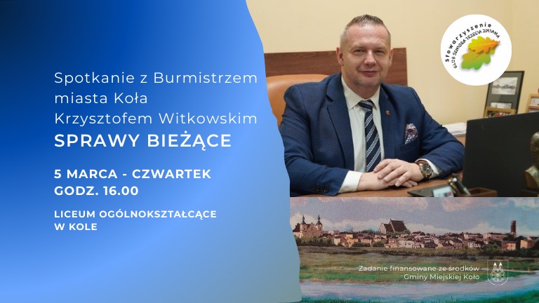 Dlatego zapraszamy Państwa na spotkanie z Burmistrzem Miasta Koła – Krzysztof Witkowski.