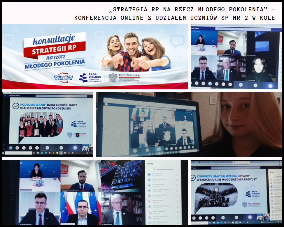 „STRATEGIA RP NA RZECZ MŁODEGO POKOLENIA” – KONFERENCJA ONLINE Z UDZIAŁEM UCZNIÓW SP NR 2 W KOLE