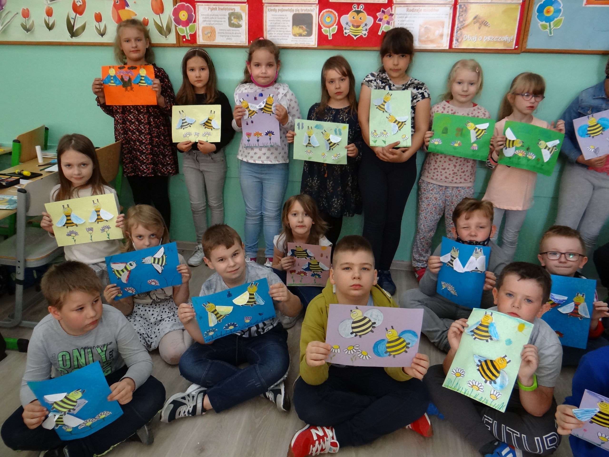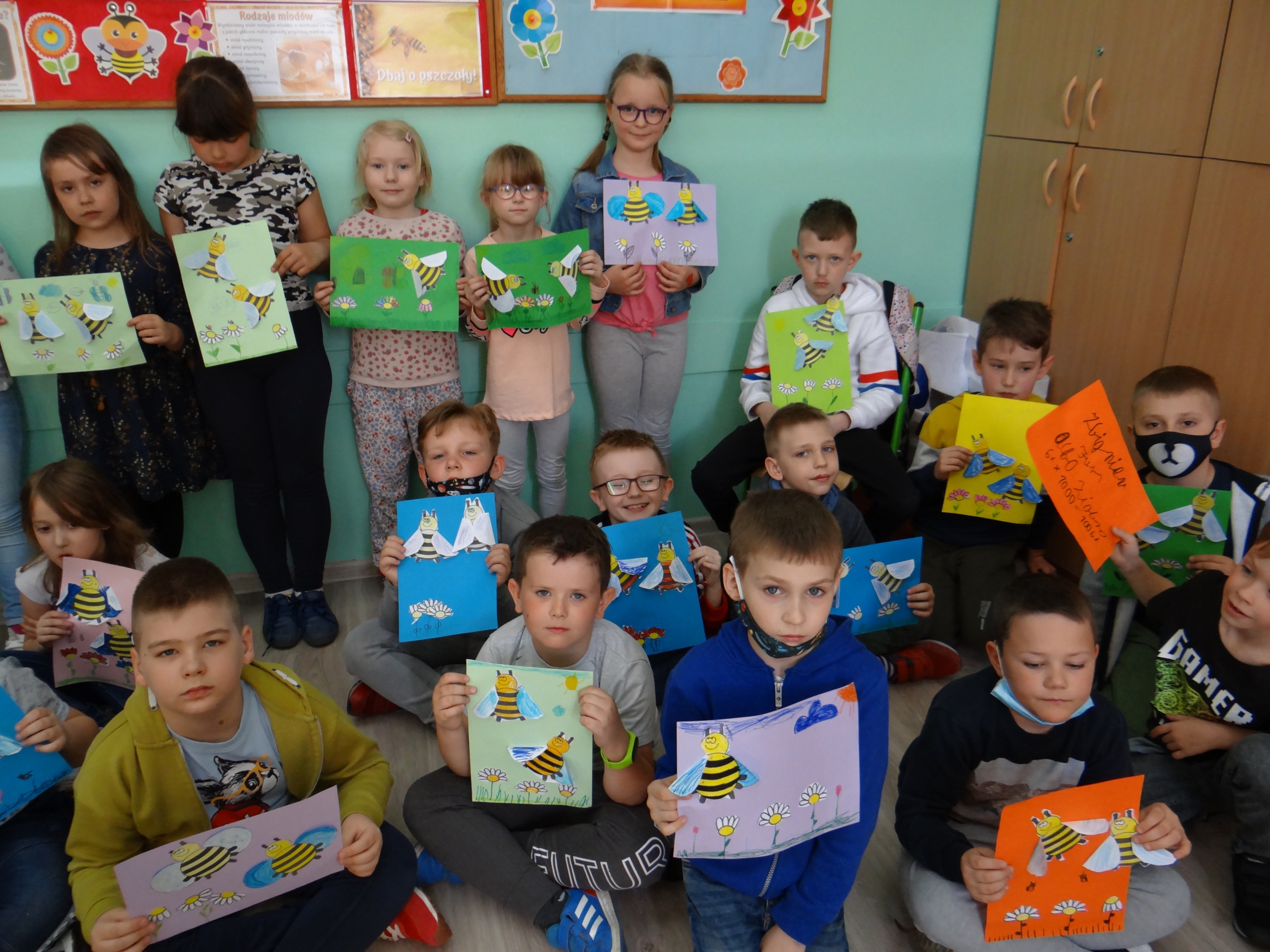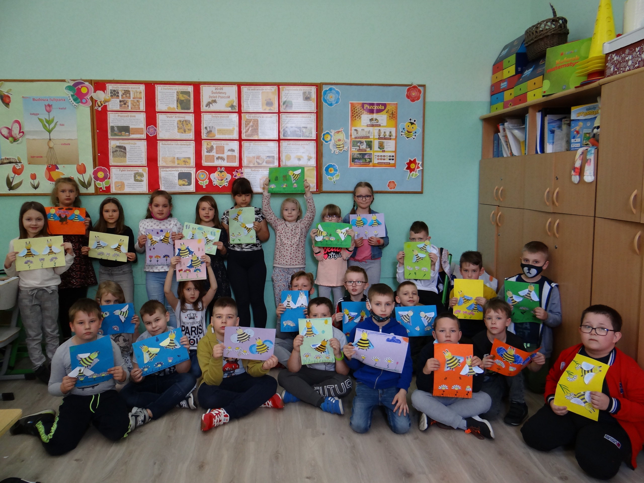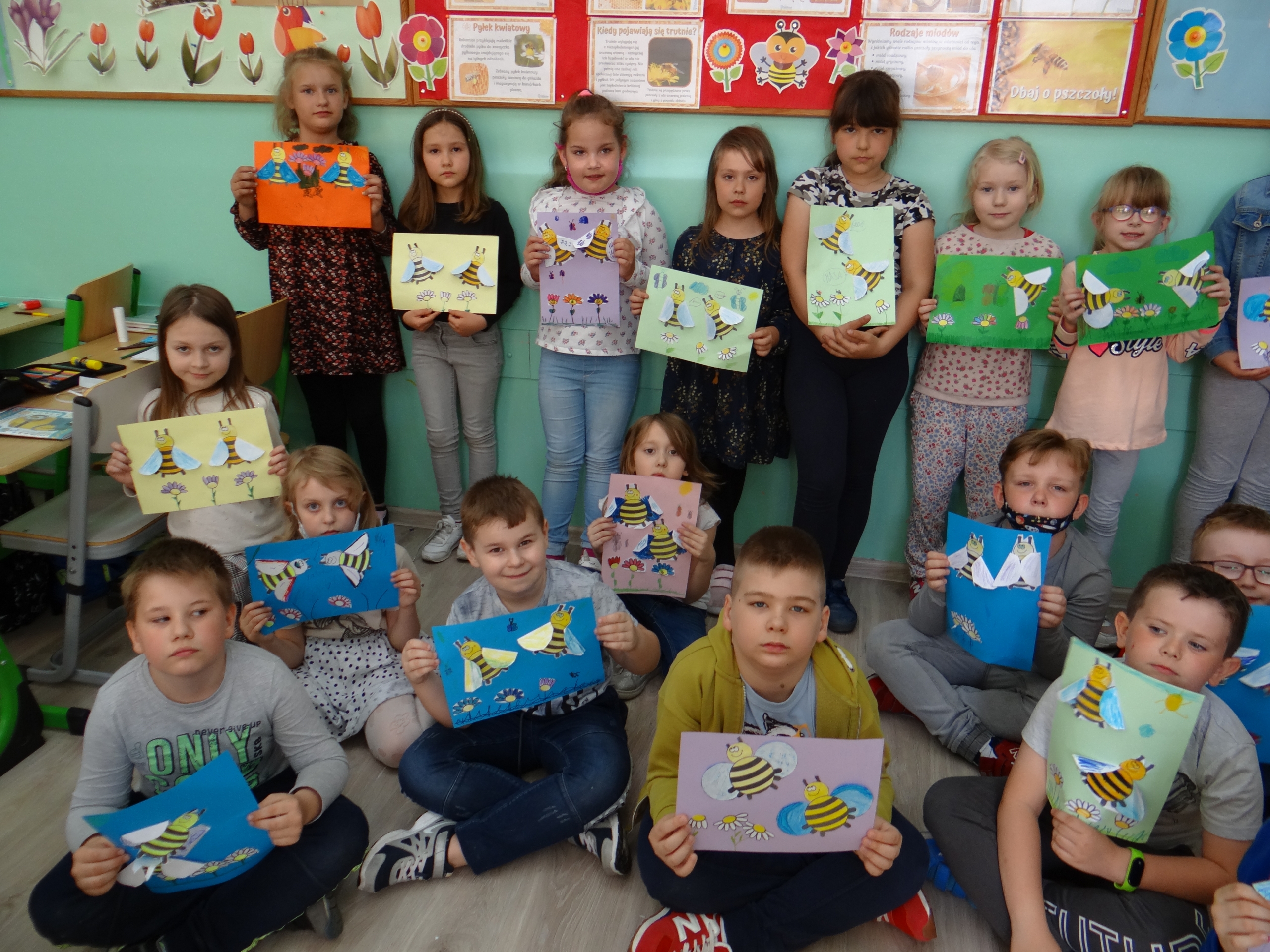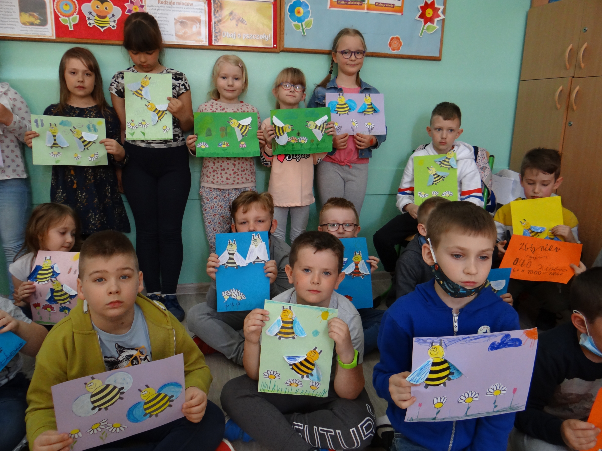 W klasie 1 a Szkoły Podstawowej nr 1 w Kole, było dziś troszeczkę jak w ulu, a wszystko to za sprawą przypadającego na 20 maja Światowego Dnia Pszczoły. Święto to zostało ustanowione przez ONZ. Inicjatywa obchodów Dnia Pszczoły zrodziła się dzięki Słoweńcom, którzy chcieli podkreślić rolę i znaczenie pszczół m.in: dla pozyskiwania żywności. Czwartkowe zajęcia rozpoczęły się od wysłuchania prezentacji i obejrzenia gazetki (materiał Edupassion), podczas której dzieci poszerzyły swoją wiedzę przyrodniczą o pszczołach. Poznały życie pszczół ich znaczenie dla ekosystemu. Zapoznały się z budową, a także cyklem rozwojowym tych pożytecznych owadów. Wiedzą, jaką rolę odgrywa w ulu królowa, robotnice i trutnie, a także w jaki sposób porozumiewają się między sobą. Uczniowie klasy obejrzeli również 3 odcinki serialu „Z kamerą wśród pszczół” celem utrwalenia zdobytej wiedzy. Dzieci wykonały z tej okazji pracę plastyczno – techniczną przestawiającą dzisiejszych bohaterów, czyli pszczółki. Podczas zajęć dzieci zdały sobie sprawę jak zmiany klimatu, stosowanie środków ochrony roślin, zabudowywanie obszarów naturalnych, a przede wszystkim zanieczyszczenie naszego środowiska bardzo szkodzi zapylaczom na całym świecie. Dowiedziały się również w jaki sposób mogą im pomóc. Mogą to zrobić w następujący sposób: wzbogacając balkony, ogrody o rośliny przyjazne dla pszczół, budując domek dla nich, robiąc poidełko, a przede wszystkim stosując ekologiczne środki ochrony roślin. Zajęcia były doskonałą okazją do refleksji i podkreślenia znaczenia pszczół dla środowiska naturalnego i człowieka.