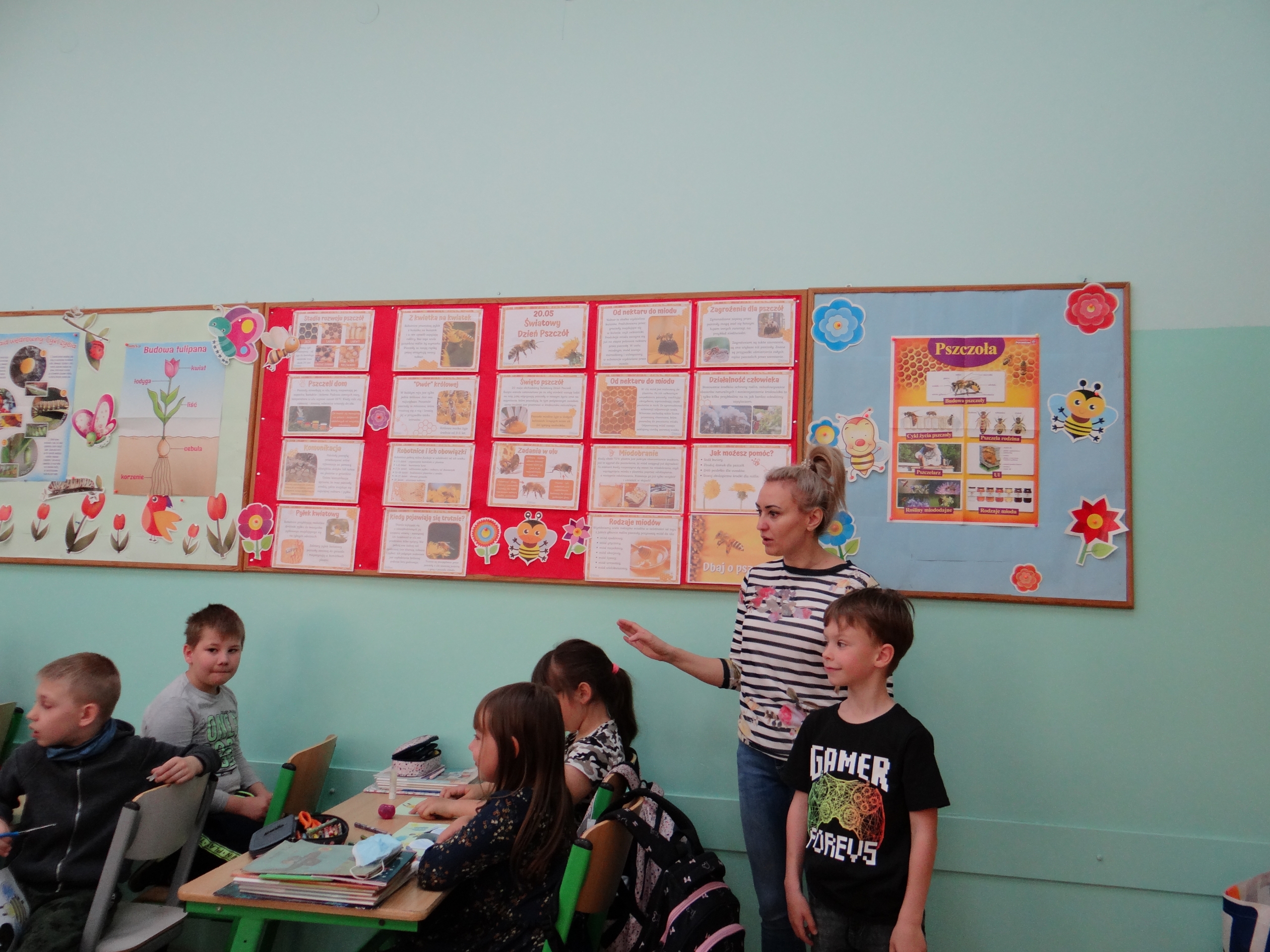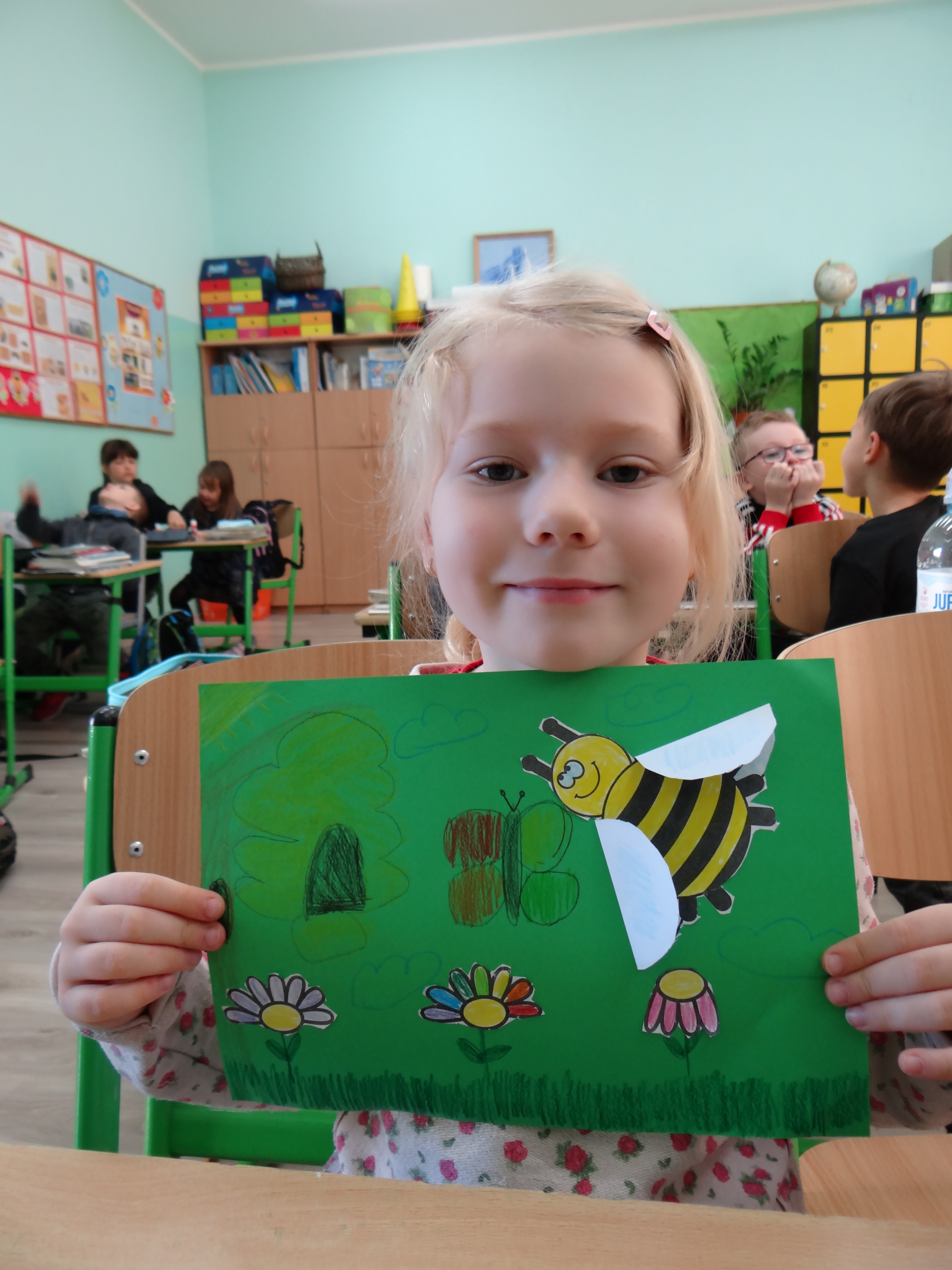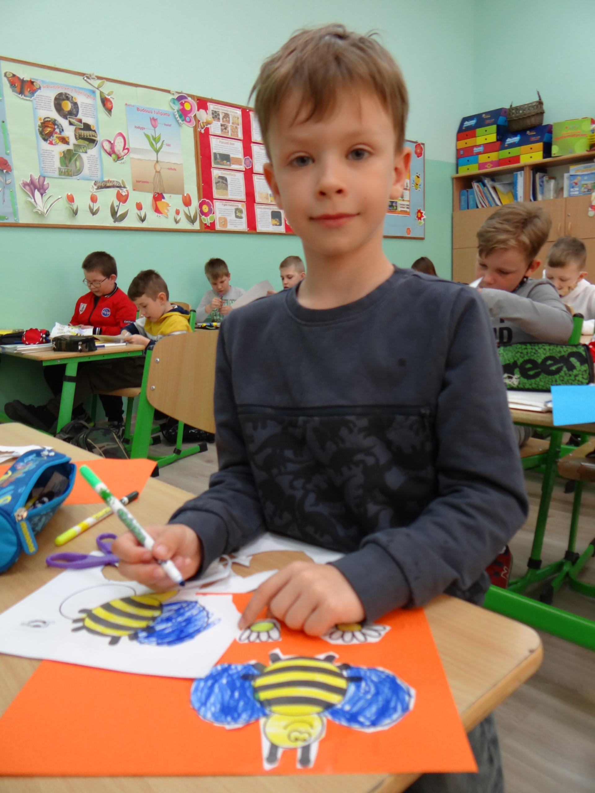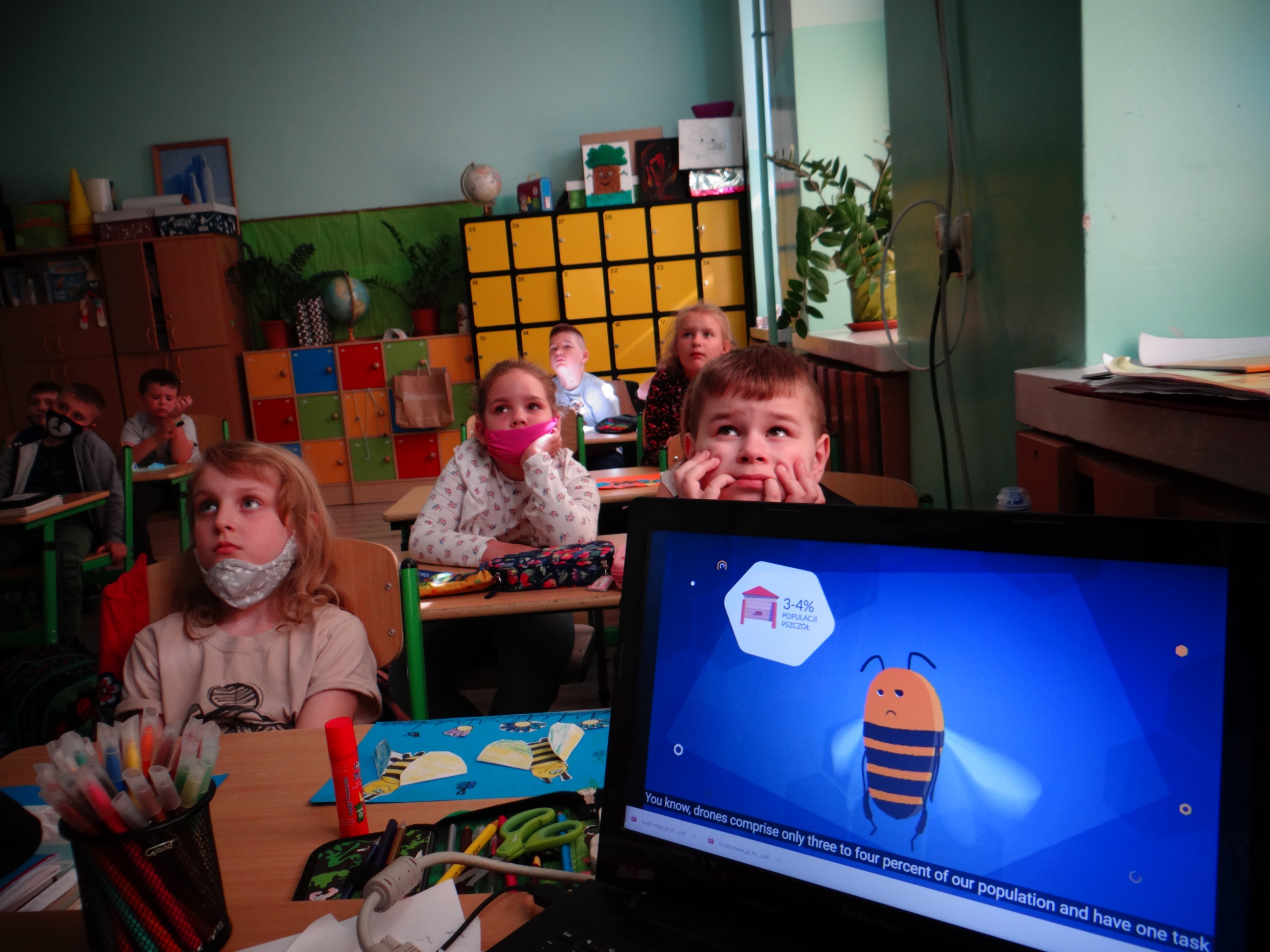 W klasie 1 a Szkoły Podstawowej nr 1 w Kole, było dziś troszeczkę jak w ulu, a wszystko to za sprawą przypadającego na 20 maja Światowego Dnia Pszczoły. Święto to zostało ustanowione przez ONZ. Inicjatywa obchodów Dnia Pszczoły zrodziła się dzięki Słoweńcom, którzy chcieli podkreślić rolę i znaczenie pszczół m.in: dla pozyskiwania żywności. Czwartkowe zajęcia rozpoczęły się od wysłuchania prezentacji i obejrzenia gazetki (materiał Edupassion), podczas której dzieci poszerzyły swoją wiedzę przyrodniczą o pszczołach. Poznały życie pszczół ich znaczenie dla ekosystemu. Zapoznały się z budową, a także cyklem rozwojowym tych pożytecznych owadów. Wiedzą, jaką rolę odgrywa w ulu królowa, robotnice i trutnie, a także w jaki sposób porozumiewają się między sobą. Uczniowie klasy obejrzeli również 3 odcinki serialu „Z kamerą wśród pszczół” celem utrwalenia zdobytej wiedzy. Dzieci wykonały z tej okazji pracę plastyczno – techniczną przestawiającą dzisiejszych bohaterów, czyli pszczółki. Podczas zajęć dzieci zdały sobie sprawę jak zmiany klimatu, stosowanie środków ochrony roślin, zabudowywanie obszarów naturalnych, a przede wszystkim zanieczyszczenie naszego środowiska bardzo szkodzi zapylaczom na całym świecie. Dowiedziały się również w jaki sposób mogą im pomóc. Mogą to zrobić w następujący sposób: wzbogacając balkony, ogrody o rośliny przyjazne dla pszczół, budując domek dla nich, robiąc poidełko, a przede wszystkim stosując ekologiczne środki ochrony roślin. Zajęcia były doskonałą okazją do refleksji i podkreślenia znaczenia pszczół dla środowiska naturalnego i człowieka.
