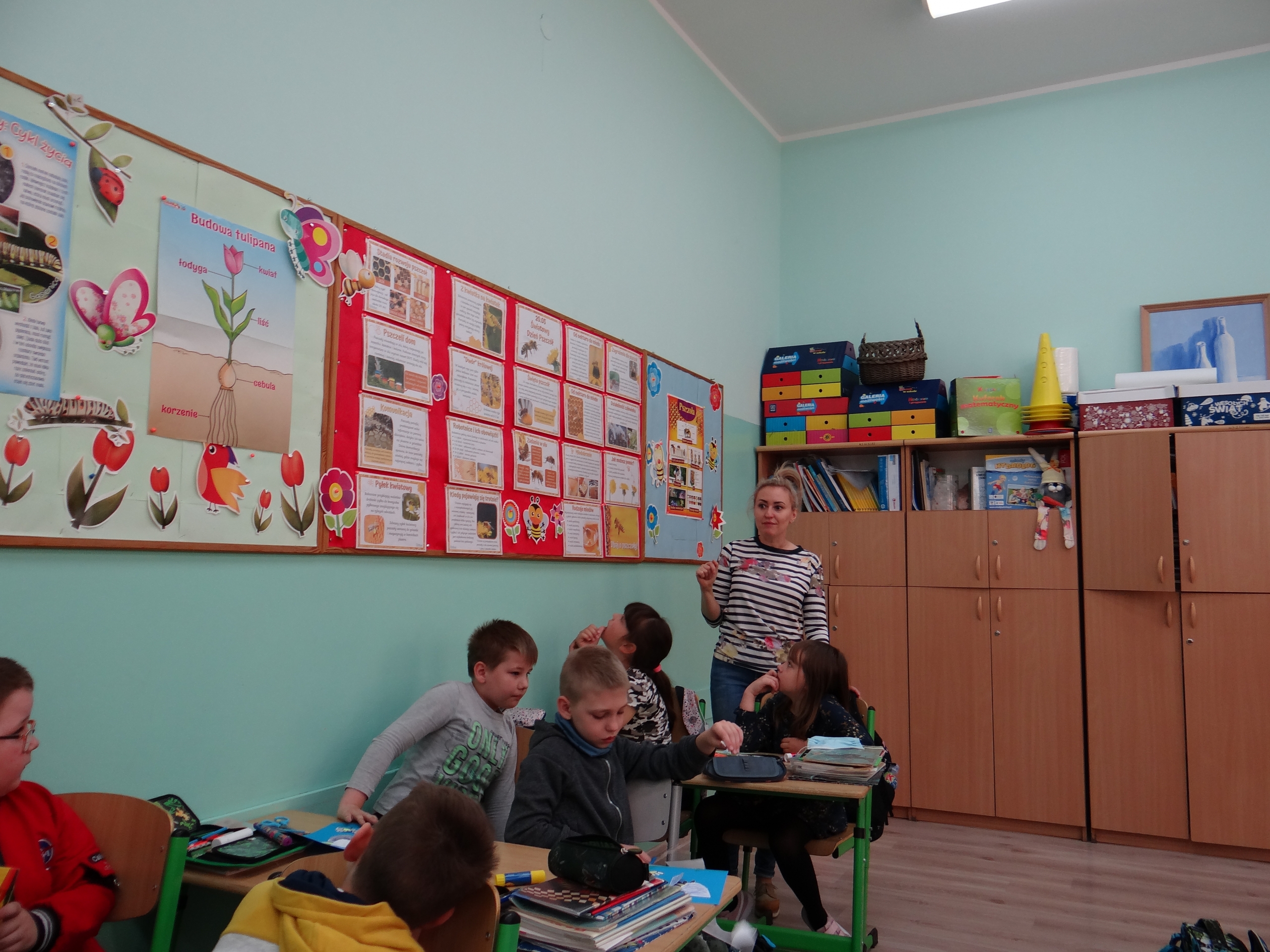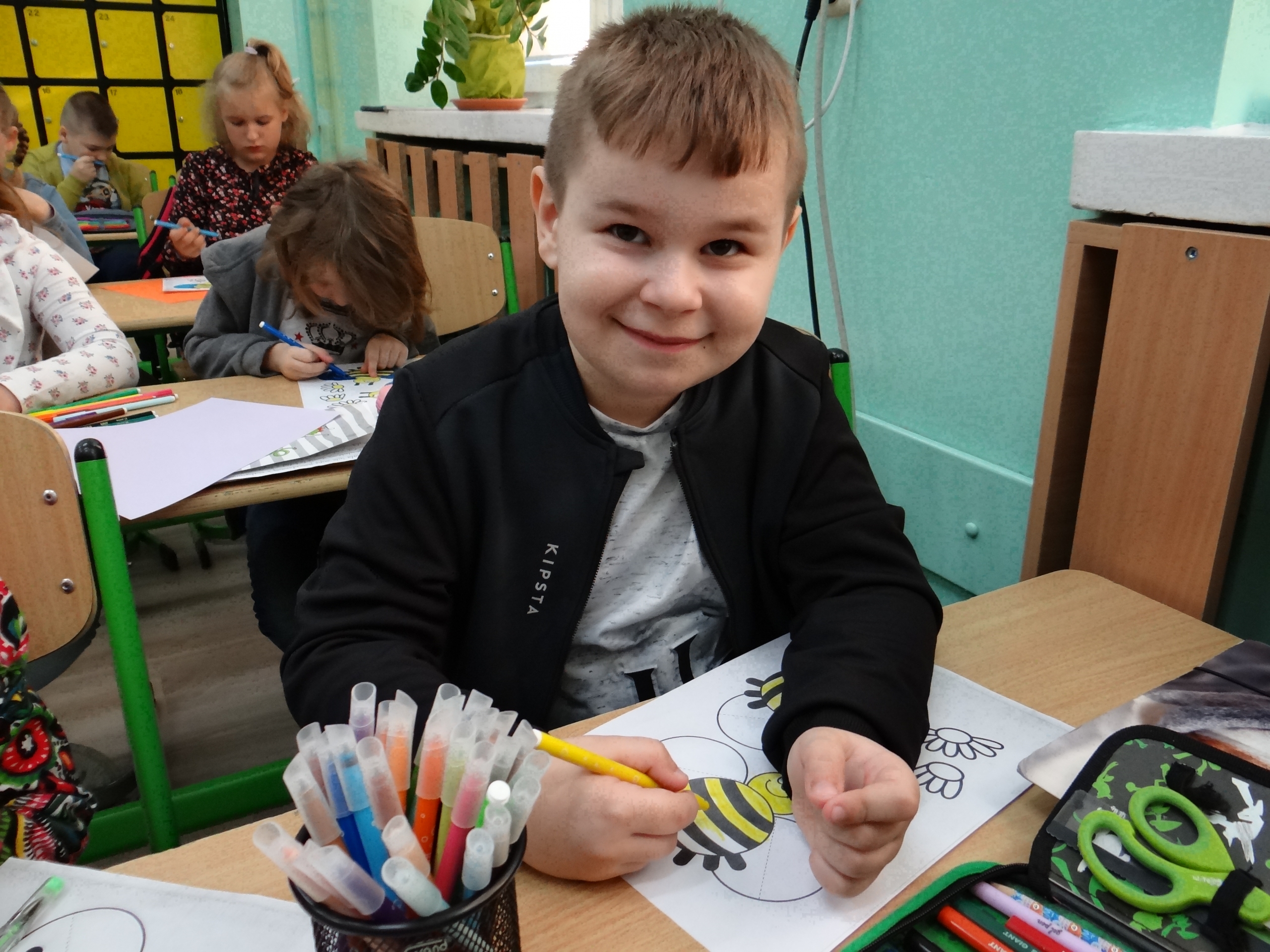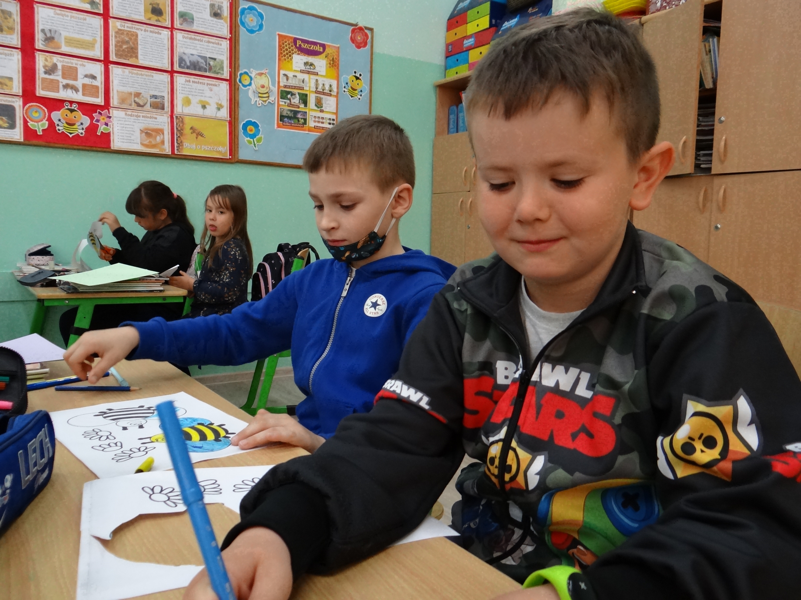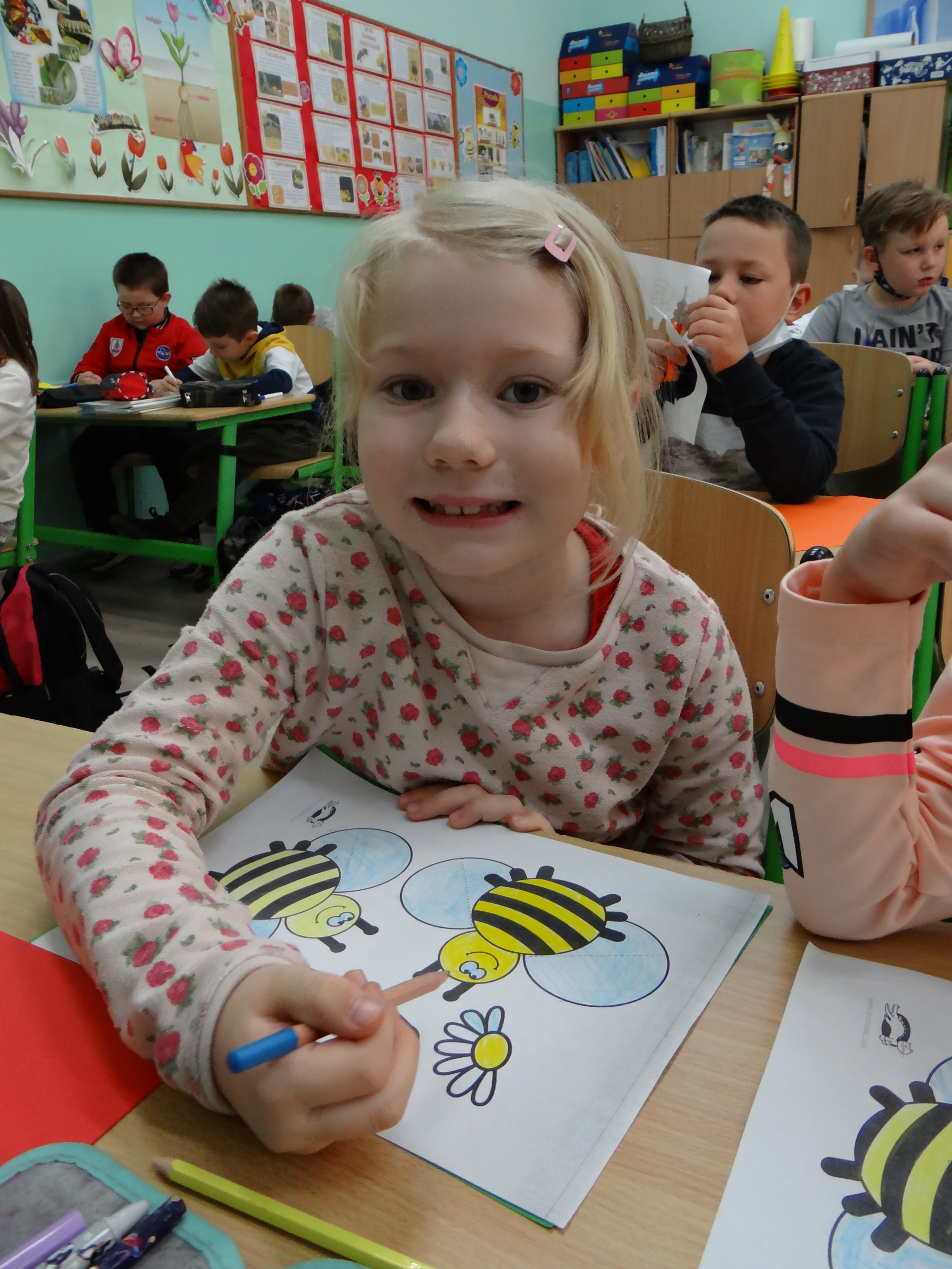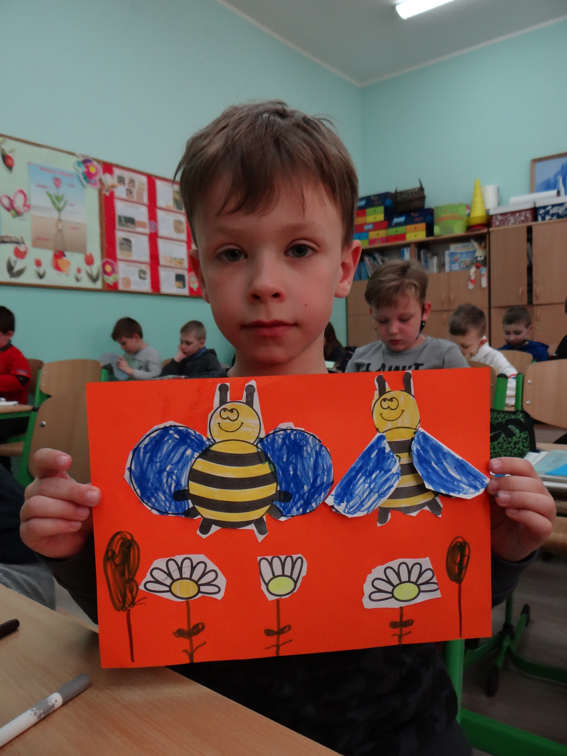 W klasie 1 a Szkoły Podstawowej nr 1 w Kole, było dziś troszeczkę jak w ulu, a wszystko to za sprawą przypadającego na 20 maja Światowego Dnia Pszczoły. Święto to zostało ustanowione przez ONZ. Inicjatywa obchodów Dnia Pszczoły zrodziła się dzięki Słoweńcom, którzy chcieli podkreślić rolę i znaczenie pszczół m.in: dla pozyskiwania żywności. Czwartkowe zajęcia rozpoczęły się od wysłuchania prezentacji i obejrzenia gazetki (materiał Edupassion), podczas której dzieci poszerzyły swoją wiedzę przyrodniczą o pszczołach. Poznały życie pszczół ich znaczenie dla ekosystemu. Zapoznały się z budową, a także cyklem rozwojowym tych pożytecznych owadów. Wiedzą, jaką rolę odgrywa w ulu królowa, robotnice i trutnie, a także w jaki sposób porozumiewają się między sobą. Uczniowie klasy obejrzeli również 3 odcinki serialu „Z kamerą wśród pszczół” celem utrwalenia zdobytej wiedzy. Dzieci wykonały z tej okazji pracę plastyczno – techniczną przestawiającą dzisiejszych bohaterów, czyli pszczółki. Podczas zajęć dzieci zdały sobie sprawę jak zmiany klimatu, stosowanie środków ochrony roślin, zabudowywanie obszarów naturalnych, a przede wszystkim zanieczyszczenie naszego środowiska bardzo szkodzi zapylaczom na całym świecie. Dowiedziały się również w jaki sposób mogą im pomóc. Mogą to zrobić w następujący sposób: wzbogacając balkony, ogrody o rośliny przyjazne dla pszczół, budując domek dla nich, robiąc poidełko, a przede wszystkim stosując ekologiczne środki ochrony roślin. Zajęcia były doskonałą okazją do refleksji i podkreślenia znaczenia pszczół dla środowiska naturalnego i człowieka.