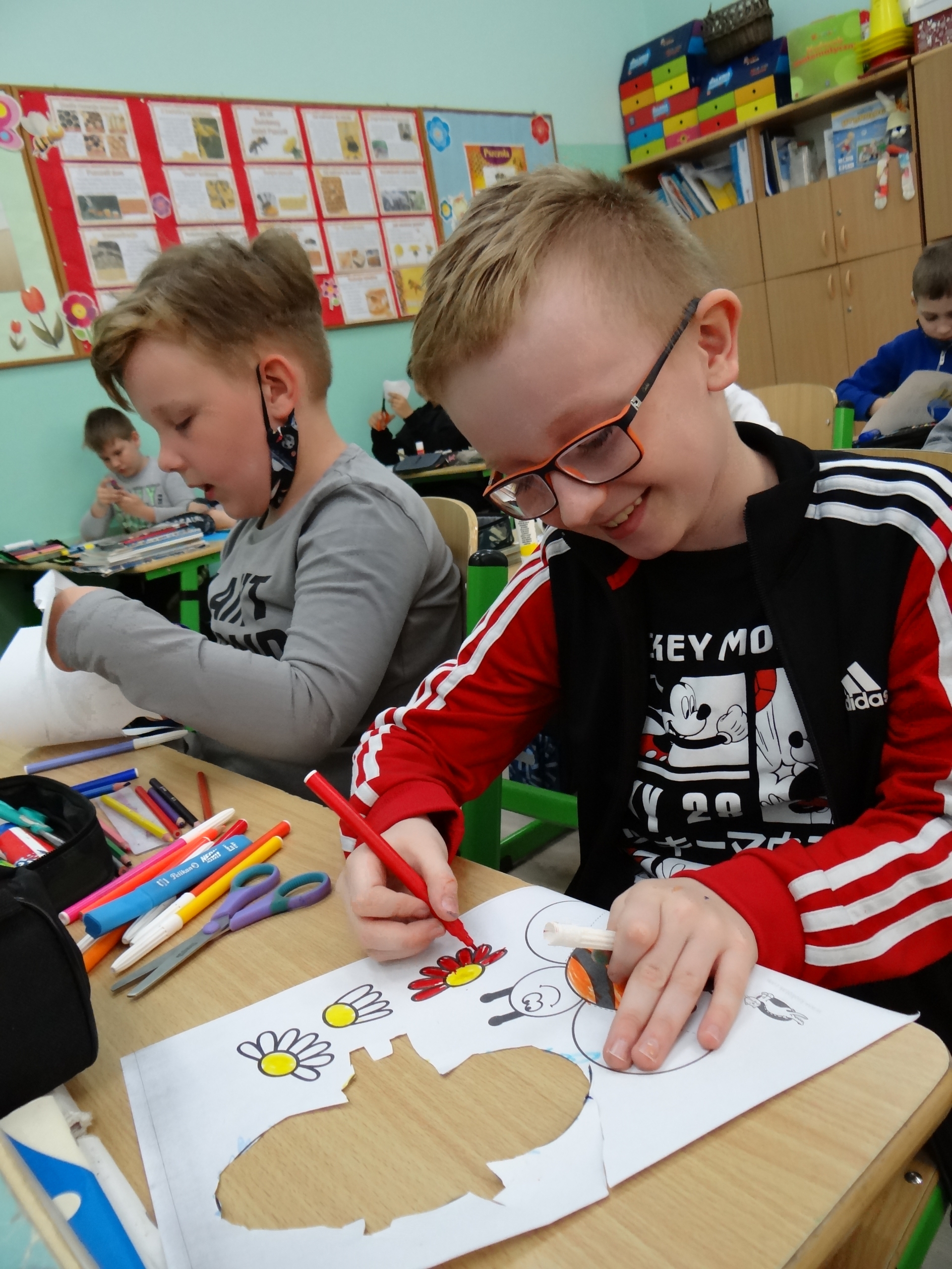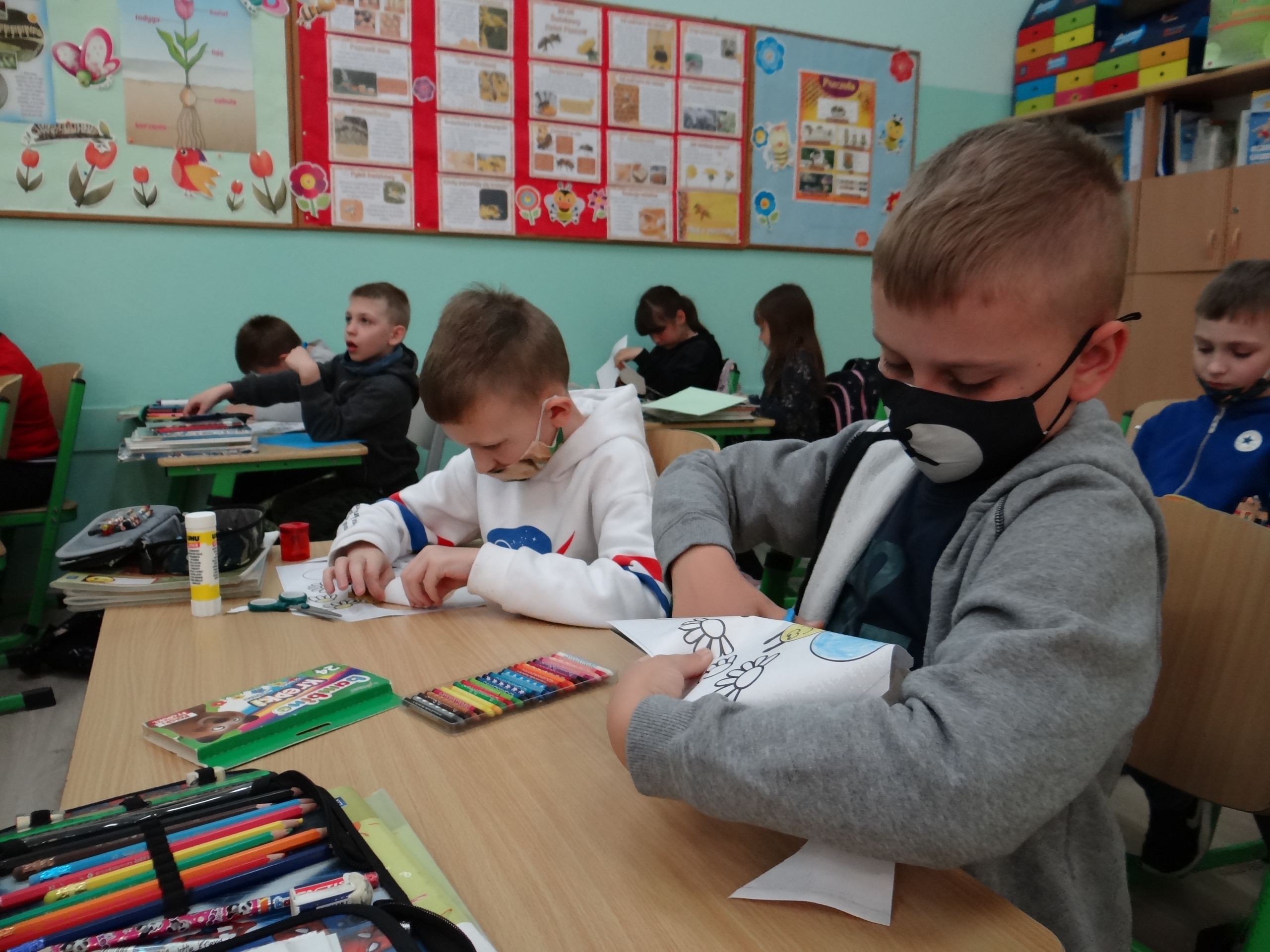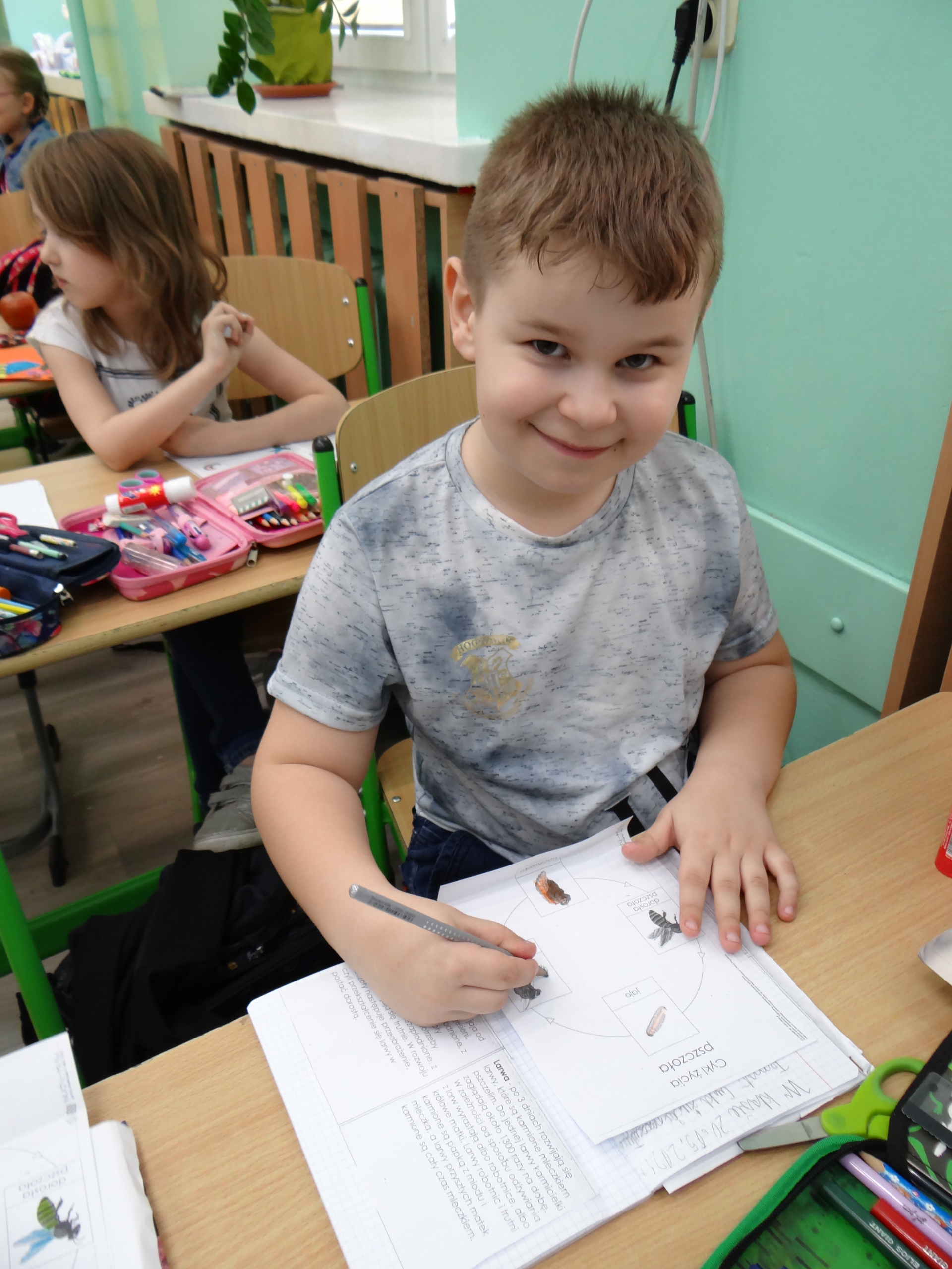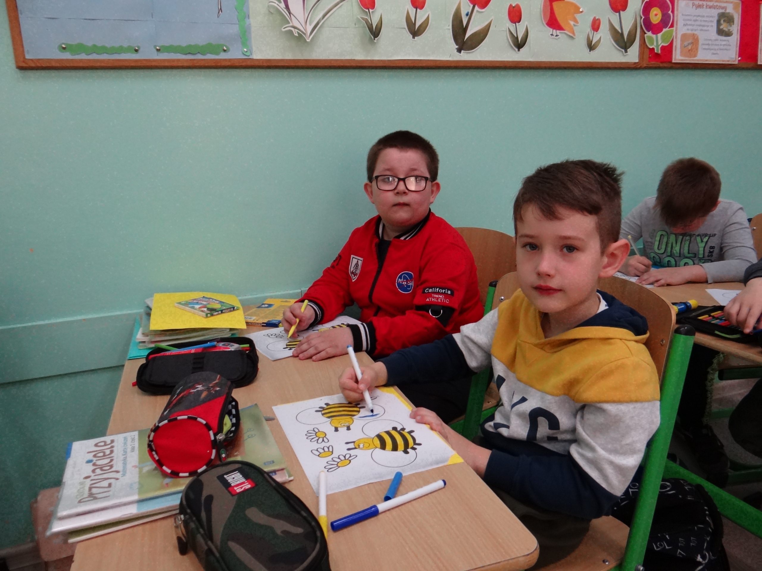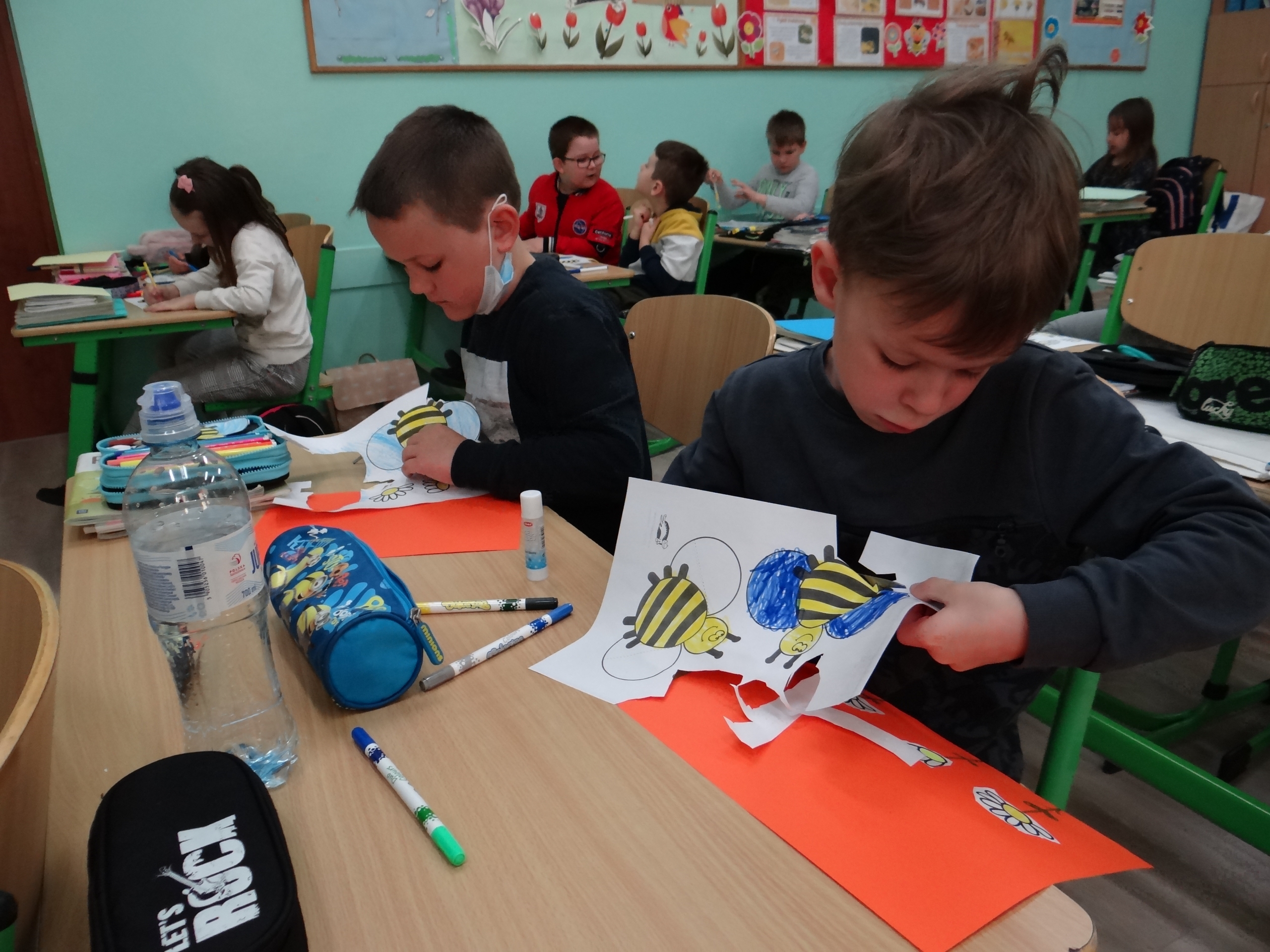 W klasie 1 a Szkoły Podstawowej nr 1 w Kole, było dziś troszeczkę jak w ulu, a wszystko to za sprawą przypadającego na 20 maja Światowego Dnia Pszczoły. Święto to zostało ustanowione przez ONZ. Inicjatywa obchodów Dnia Pszczoły zrodziła się dzięki Słoweńcom, którzy chcieli podkreślić rolę i znaczenie pszczół m.in: dla pozyskiwania żywności. Czwartkowe zajęcia rozpoczęły się od wysłuchania prezentacji i obejrzenia gazetki (materiał Edupassion), podczas której dzieci poszerzyły swoją wiedzę przyrodniczą o pszczołach. Poznały życie pszczół ich znaczenie dla ekosystemu. Zapoznały się z budową, a także cyklem rozwojowym tych pożytecznych owadów. Wiedzą, jaką rolę odgrywa w ulu królowa, robotnice i trutnie, a także w jaki sposób porozumiewają się między sobą. Uczniowie klasy obejrzeli również 3 odcinki serialu „Z kamerą wśród pszczół” celem utrwalenia zdobytej wiedzy. Dzieci wykonały z tej okazji pracę plastyczno – techniczną przestawiającą dzisiejszych bohaterów, czyli pszczółki. Podczas zajęć dzieci zdały sobie sprawę jak zmiany klimatu, stosowanie środków ochrony roślin, zabudowywanie obszarów naturalnych, a przede wszystkim zanieczyszczenie naszego środowiska bardzo szkodzi zapylaczom na całym świecie. Dowiedziały się również w jaki sposób mogą im pomóc. Mogą to zrobić w następujący sposób: wzbogacając balkony, ogrody o rośliny przyjazne dla pszczół, budując domek dla nich, robiąc poidełko, a przede wszystkim stosując ekologiczne środki ochrony roślin. Zajęcia były doskonałą okazją do refleksji i podkreślenia znaczenia pszczół dla środowiska naturalnego i człowieka.