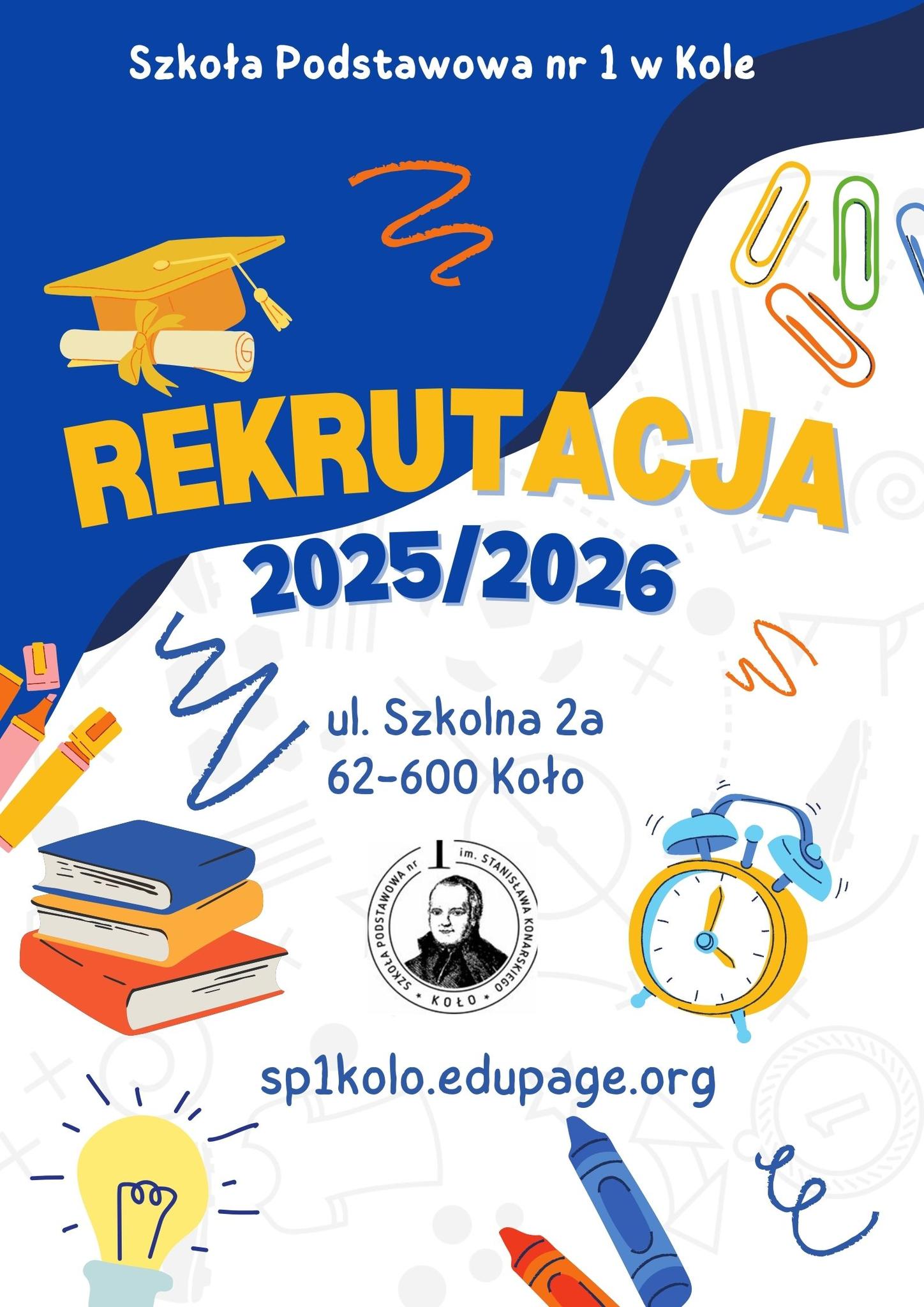 Szkoła Podstawowa nr 1 w Kole zaprasza do zapisów do klas pierwszych na rok szkolny 2025/2026. Rekrutacja rozpoczyna się 03.03.2025r. Szczegółowy harmonogram rekrutacji oraz zasady przyjęć dostępne są w zakładce REKRUTACJA na naszej stronie internetowej.