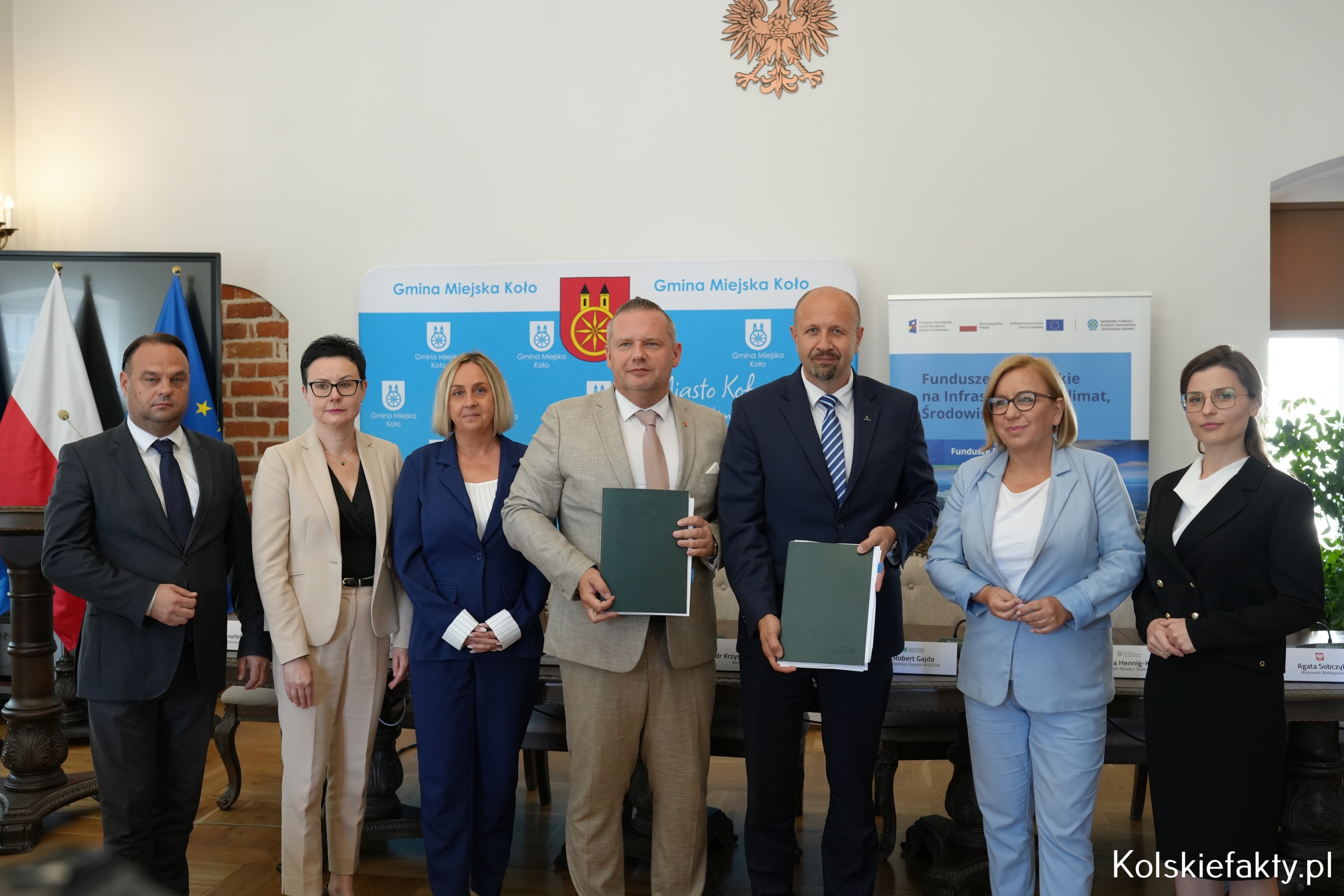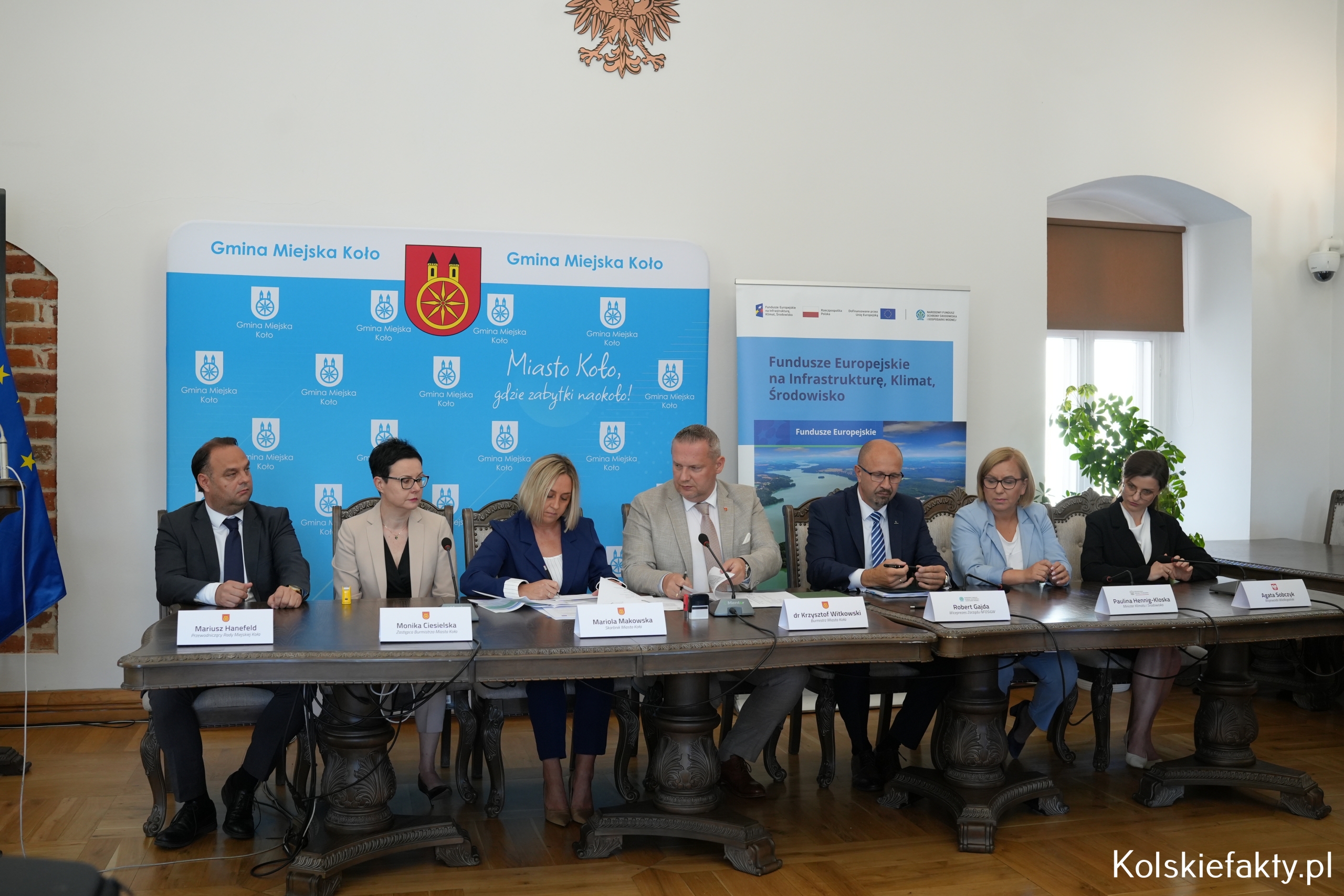 Umowę o dofinansowanie podpisali: Burmistrz Miasta Koła dr Krzysztof Witkowski, Skarbnik Miasta Mariola Makowska oraz Wiceprezes Zarządu Narodowego Funduszu Ochrony Środowiska i Gospodarki Wodnej Robert Gajda. W wydarzeniu uczestniczyli także: Minister Klimatu i Środowiska Paulina Hennig-Kloska, Wojewoda Wielkopolski Agata Sobczyk, Zastępca Burmistrza Monika Ciesielska, Przewodniczący Rady Miejskiej Mariusz Hanefeld oraz Radni.