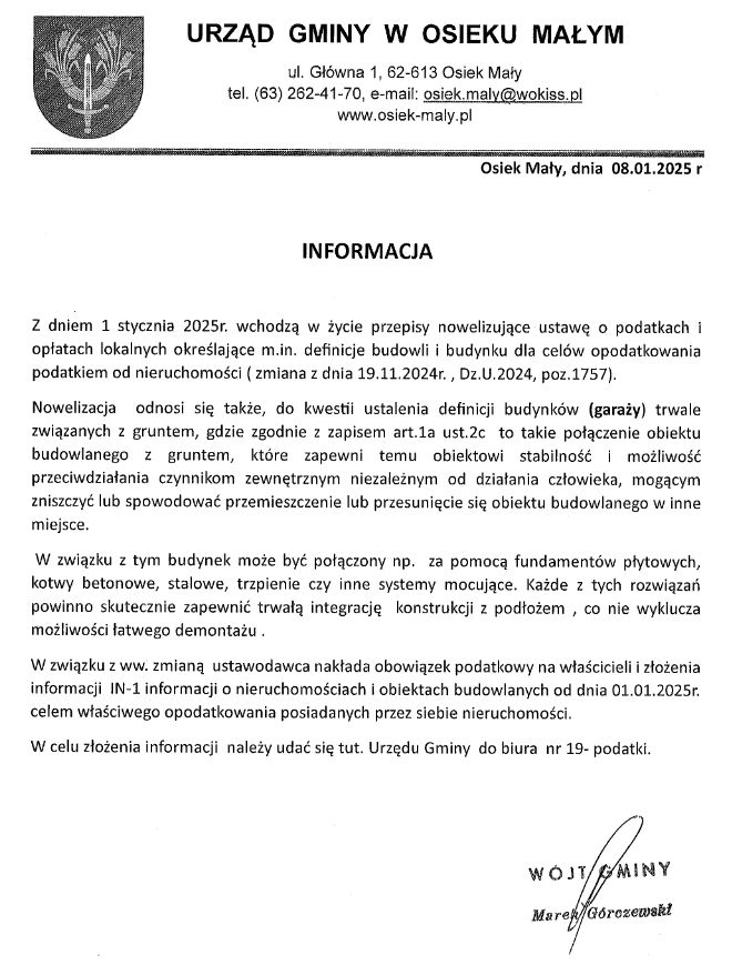 Urząd Gminy w Osieku Małym informuje!