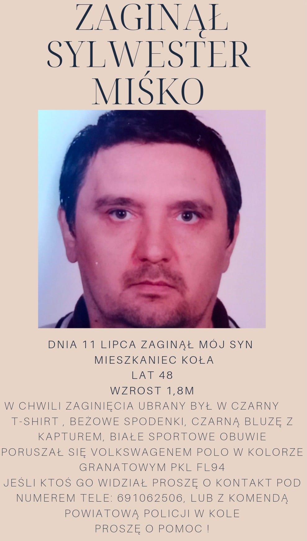 3 sierpnia, 2022 Aktualnosci Pilne UWAGA !!! PROŚBA O POMOC W ODNALEZIENIU OSOBY SYLWESTER MIŚKO Z KOŁA Prosimy o udostępnianie.Z góry dziękujemy. https://www.facebook.com/kolskiefakty/photos/a.115480866742618/590168735940493/ źródło:Pau Lina Udostępnij: