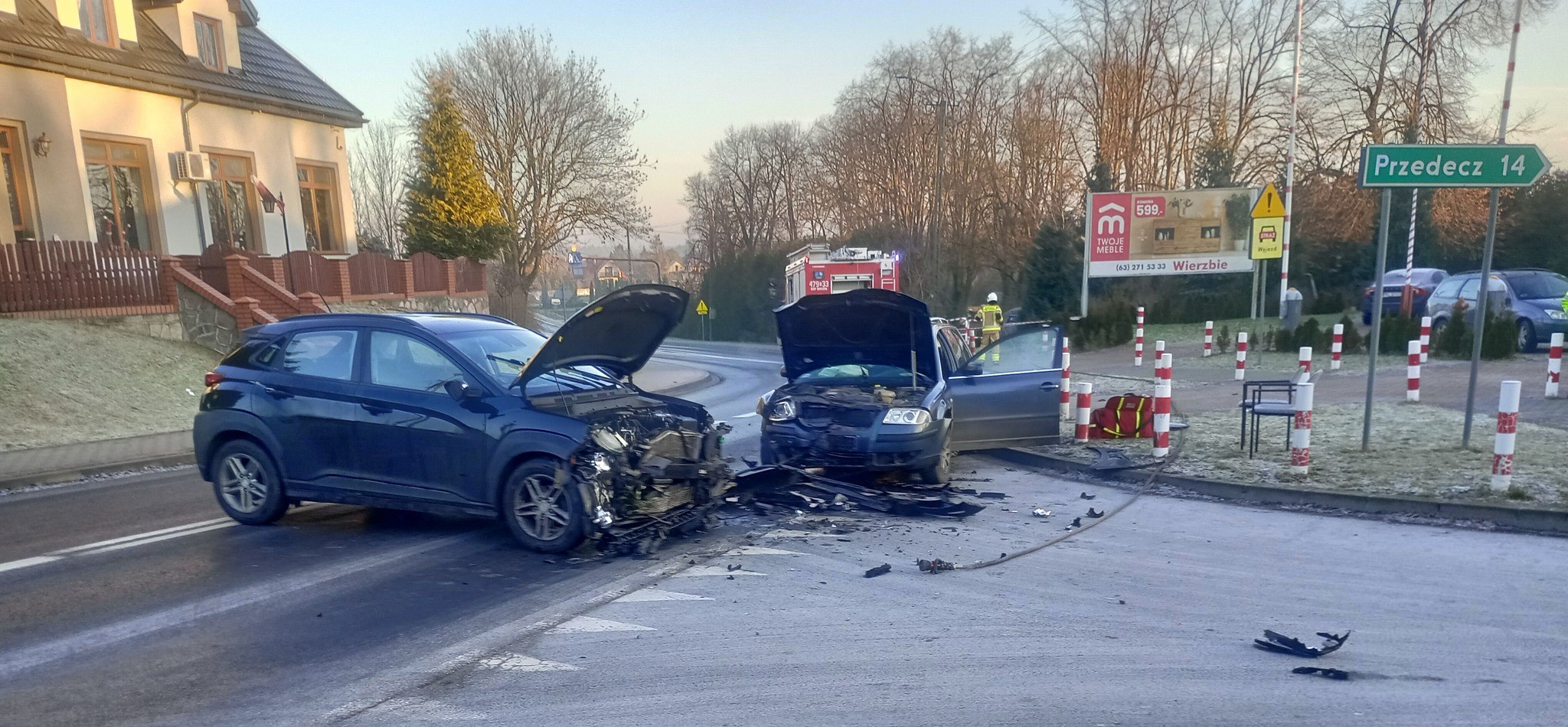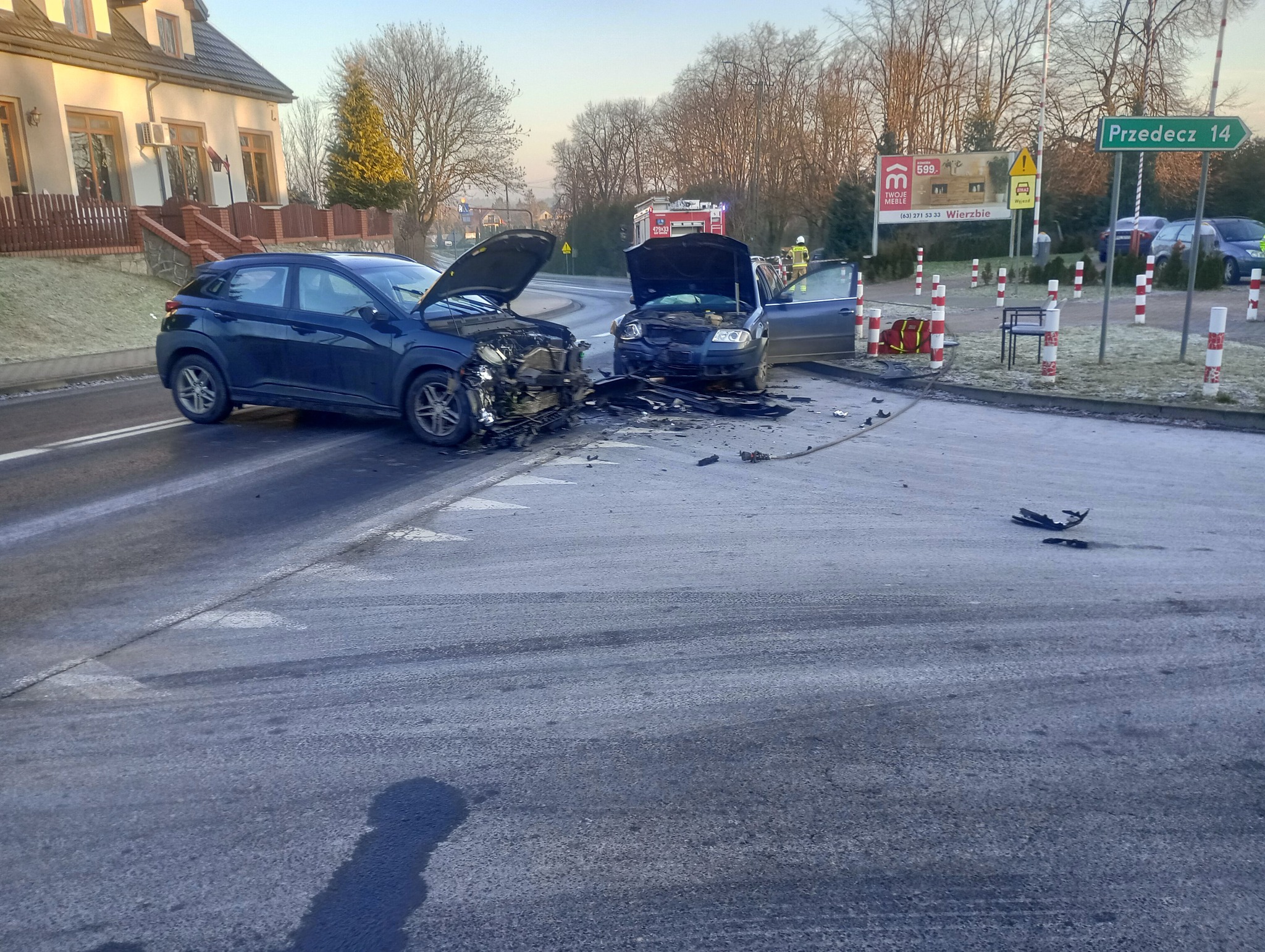 Dziś 18.01.2025 r. po godzinie 8:00 na ul. Władysława Jagiełły w Brdowie (Gmina Babiak) doszło do wypadku drogowego w ,którym uczestniczyły dwa samochody osobowe marki Volkswagen Passat oraz Hyundai Kona. Na miejsce przybyły służby ratunkowe, które, przeprowadziły swoje czynności. W wyniku wypadku dwie osoby podróżujące Hyundaiem zostały przetransportowane przez ZRM do szpitala. Dochodzenie w sprawie przyczyny wypadku prowadzi Policja.