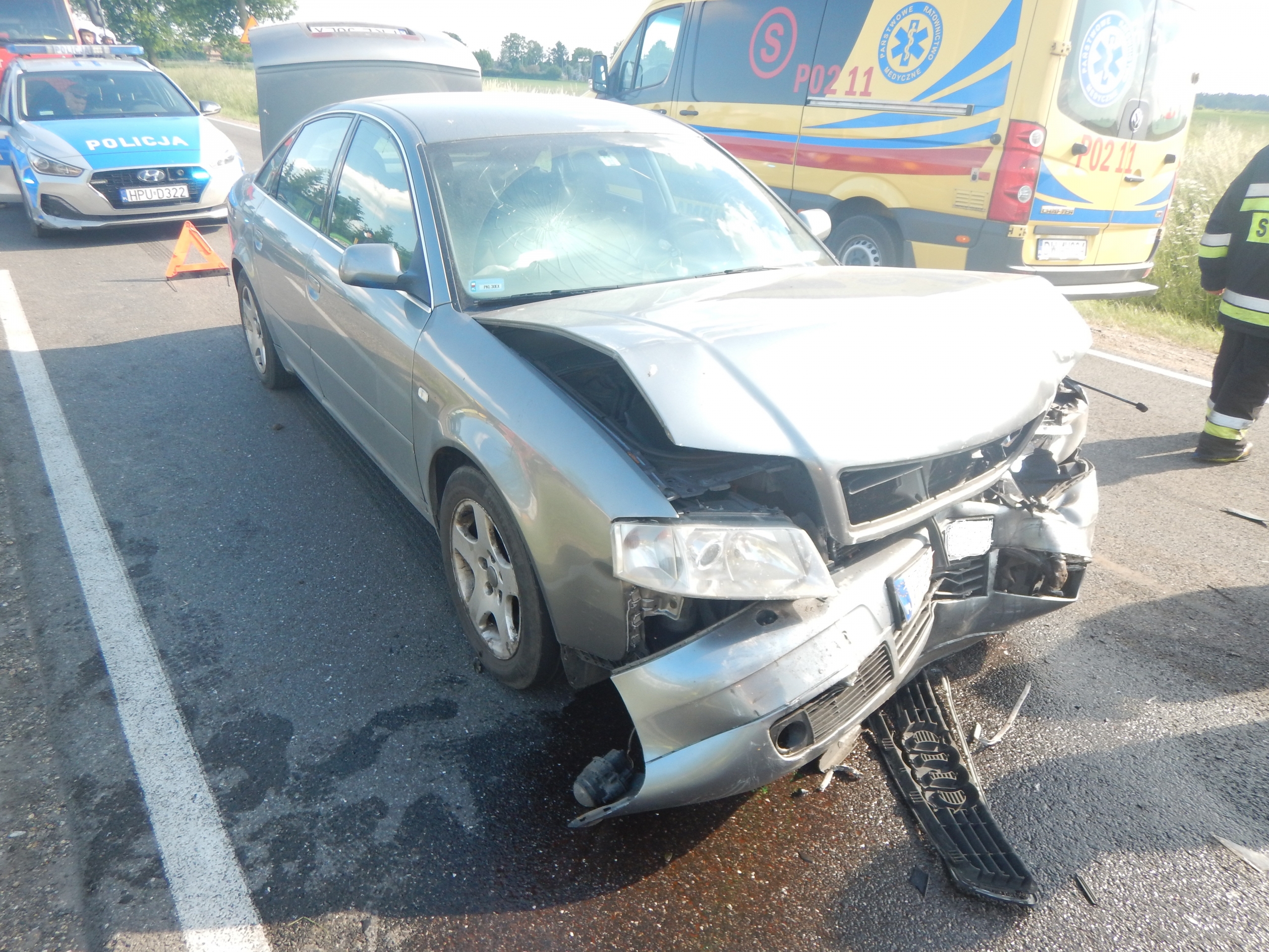 Dnia 10  czerwca o godz. 16:47 do Stanowiska Kierowania Komendanta Powiatowego PSP w Kole wpłynęło zgłoszenie o wypadku drogowym na drodze wojewódzkiej nr 473 w Chełmnie gm. Dąbie. Po dojeździe zastępów na miejsce zdarzenia Kierujący Działaniem Ratowniczym przeprowadził rozpoznanie, w wyniku którego ustalił, że w zdarzeniu brały udział dwa samochody osobowe: Audi A6 oraz Fiat Seicento. Pojazdami podróżowały łącznie trzy osoby, które opuściły je przed przybyciem zastępów JOP. Działania strażaków polegały na zabezpieczeniu miejsca zdarzenia oraz odłączeniu dopływu prądu z akumulatorów w pojazdach.  Wraz z zastępami JOP na miejsce zdarzenia przybył Zespół Ratownictwa Medycznego, który zaopatrzył kierującego Fiatem Seicento i przetransportował go do Szpitala w Kole. Kierujący Audi A6 oraz pasażer odmówili udzielenia pomocy przez Zespół Ratownictwa Medycznego.   W działaniach brały udział zastępy OSP z Dąbia, Karszewa, Chełmna oraz JRG Koło. Łączny czas trwania akcji to 1 godzina i 9 minut.
