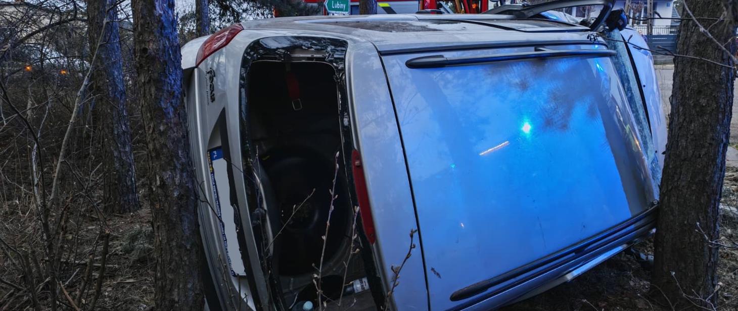 Po dojeździe zastępu z Jednostki Ratowniczo Gaśniczej kierujący działaniem ratowniczym ustalił, że samochód osobowy uderzył w przydrożne ogrodzenie i leży na prawym boku na terenie prywatnej posesji. Pojazdem podróżowało trzech mężczyzn, którzy opuścili pojazd przed przybyciem zastępów JOP. Jedna z osób biorących udział w wypadku została przetransportowana do szpitala przez osoby postronne przed przybyciem służb. Działania strażaków polegały na zabezpieczeniu i oświetleniu terenu prowadzonych działań, udzielenia kwalifikowanej pierwszej pomocy jednemu z uczestników zdarzenia, odłączenia dopływu prądu i gazu w pojeździe. Dwie osoby zostały przebadane przez zespoły ratownictwa medycznego, po ich przebadaniu pozostały one na miejscu zdarzenia. W zdarzeniu udział brała Policja.