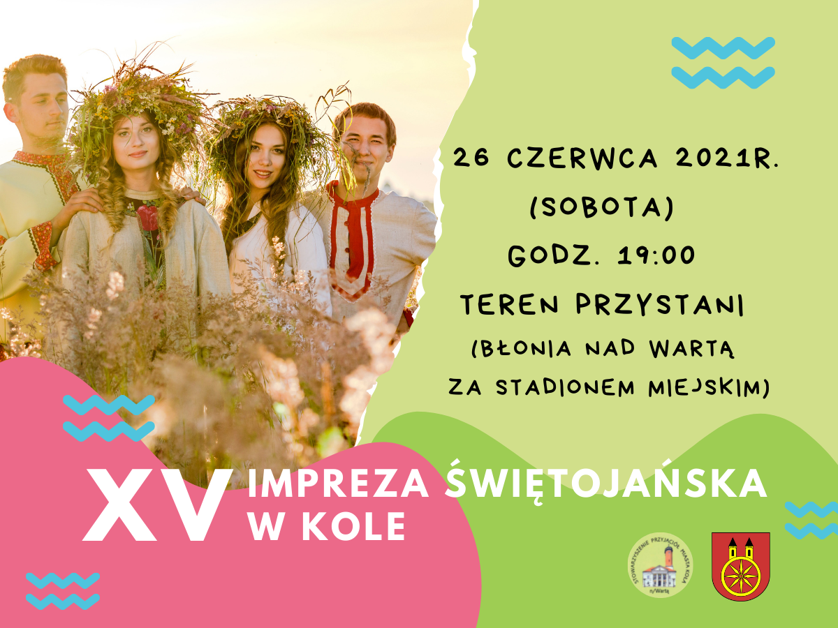 Nie możemy doczekać się spotkania z Wami na XV Imprezie Świętojańskiej w Kole. Zapraszamy na teren Przystani (błonia nad Wartą za Stadionem Miejskim) 26 czerwca 2021r. (sobota) o godz. 19:00.