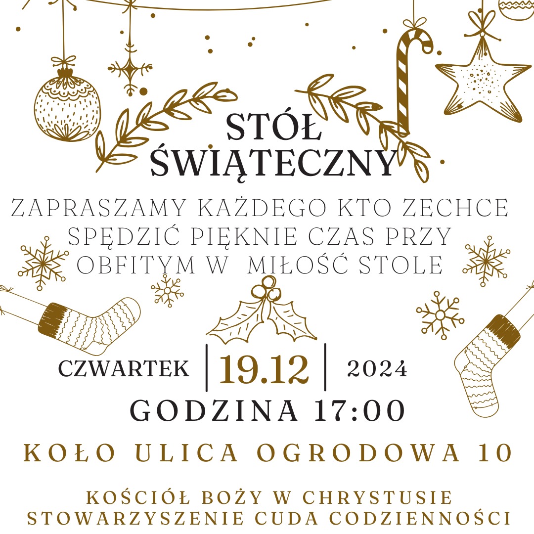 Jeśli chcesz spędzić czas przy stole obfitym w miłość, zajrzyj 19 grudnia o godz.17:00 do budynku przy ul.Ogrodowej 10. Będzie smacznie i pięknie!
