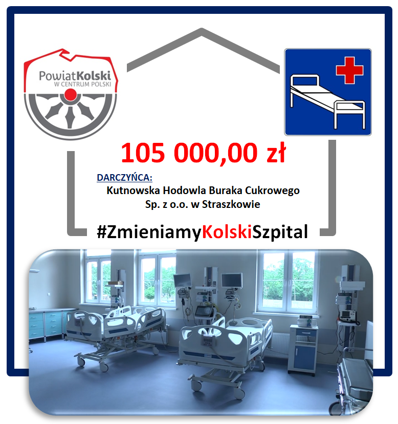 Kwota 105 tys. zł pozwoli na zakup nowych łóżek do kolskiego szpitala. Dziękujemy firmie Kutnowska Hodowla Buraka Cukrowego Sp. z o.o. w Straszkowie RAZEM #ZmieniamyKolskiSzpital