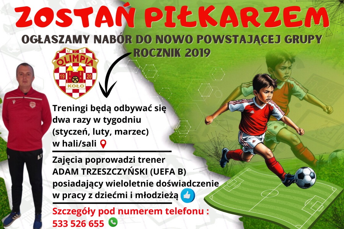 4 stycznia, 2025 Aktualnosci Sport Zostań Piłkarzem – MKS Olimpia Koło ogłasza nabór do nowo powstałej grupy! – Udostępnij: