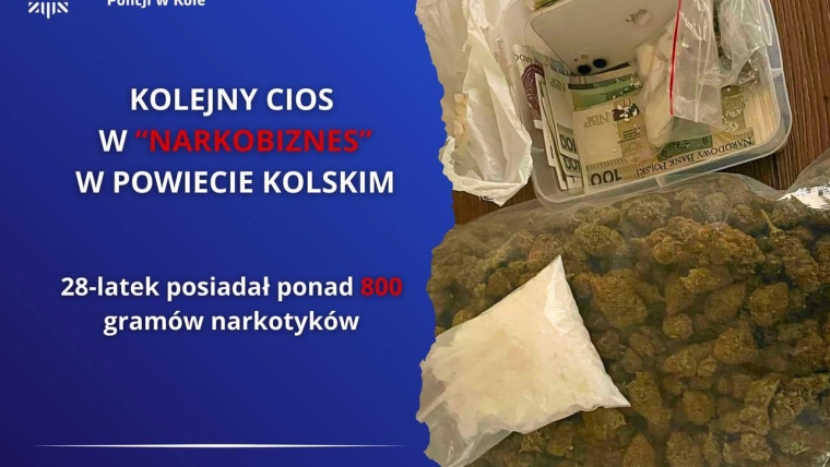 Kolejne narkotyki wyeliminowane z rynku. – Policjanci Wydziału Kryminalnego Komendy Powiatowej Policji w Kole zatrzymali 28-letniego mieszkańca powiatu kolskiego, który posiadał znaczne ilości narkotyków. – Podczas działań przeprowadzonych 10 marca br. funkcjonariusze zabezpieczyli ponad 680 gramów marihuany oraz blisko 136 gramów substancji psychotropowej. Mężczyzna został zatrzymany i doprowadzony do prokuratury. Decyzją sądu najbliższe trzy miesiące spędzi w areszcie. Za posiadanie…