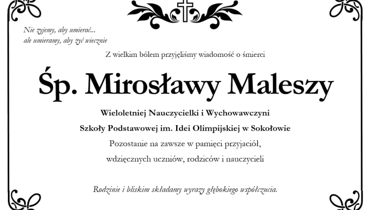 Szkoła Podstawowa im. Idei Olimpijskiej w Sokołowie – Kondolencje –