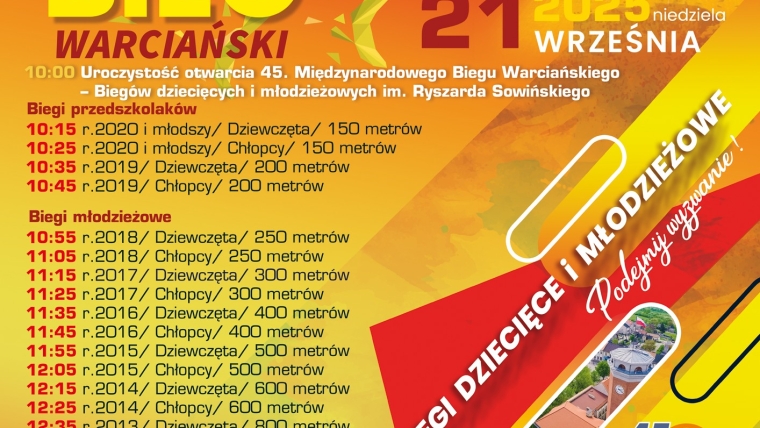 Burmistrz Miasta Koła dr Krzysztof Witkowski oraz Miejski Ośrodek Sportu i Rekreacji w Kole serdecznie zapraszają dzieci i młodzież na 45 Międzynarodowy Bieg Warciański, który w tym roku odbędzie się 21 września na Stadionie Miejskim w Kole. Aby wziąć udział w biegu należy posiadać kartę startową, którą będzie można pobrać w kolskich przedszkolach i szkołach podstawowych oraz sekretariacie Miejskiego Ośrodka…
