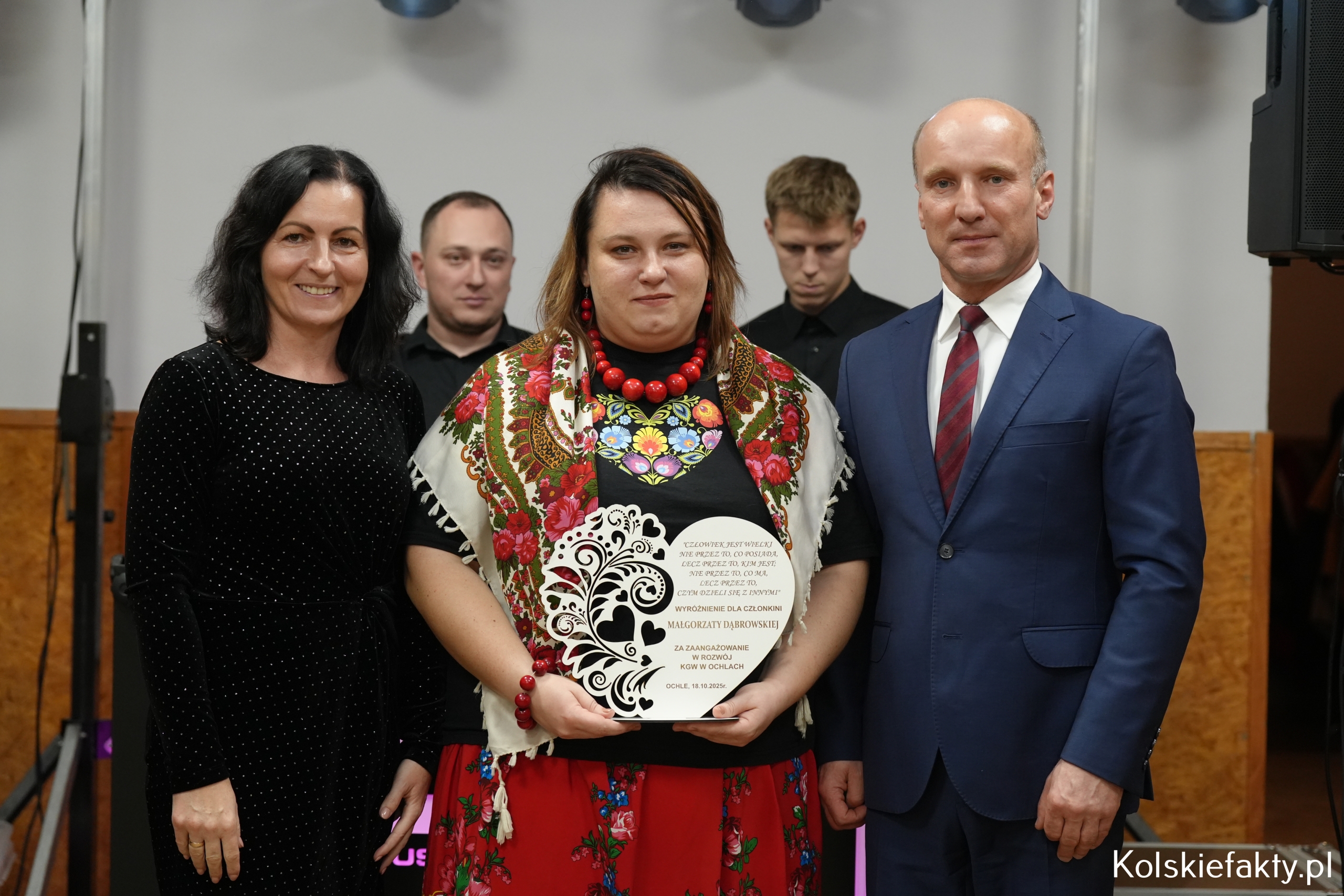 Szczególnym momentem uroczystości było uhonorowanie jednej z najbardziej zaangażowanych członkiń Koła Gospodyń Wiejskich w Ochlach – Pani Małgorzaty Dąbrowskiej. Jak podkreślono podczas wręczenia wyróżnienia, Pani Małgorzata od początku działalności koła z ogromnym zaangażowaniem, pasją i sercem działa na rzecz lokalnej społeczności, inspirując innych do aktywności i wspólnych inicjatyw. Jej pomysłowość, pracowitość i życzliwość sprawiają, że jest wzorem dla wielu osób.