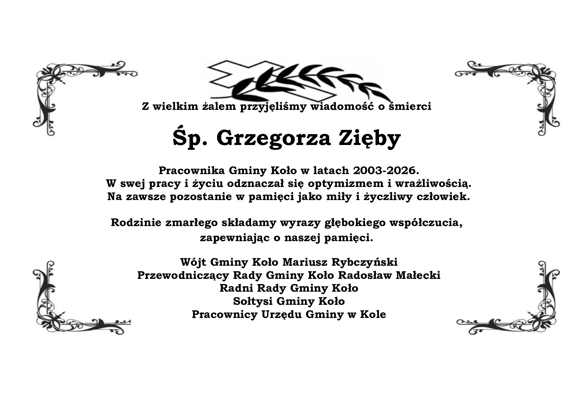Gmina Koło – Zmarł Grzegorz Zięba – pracownik Gminy Koło.