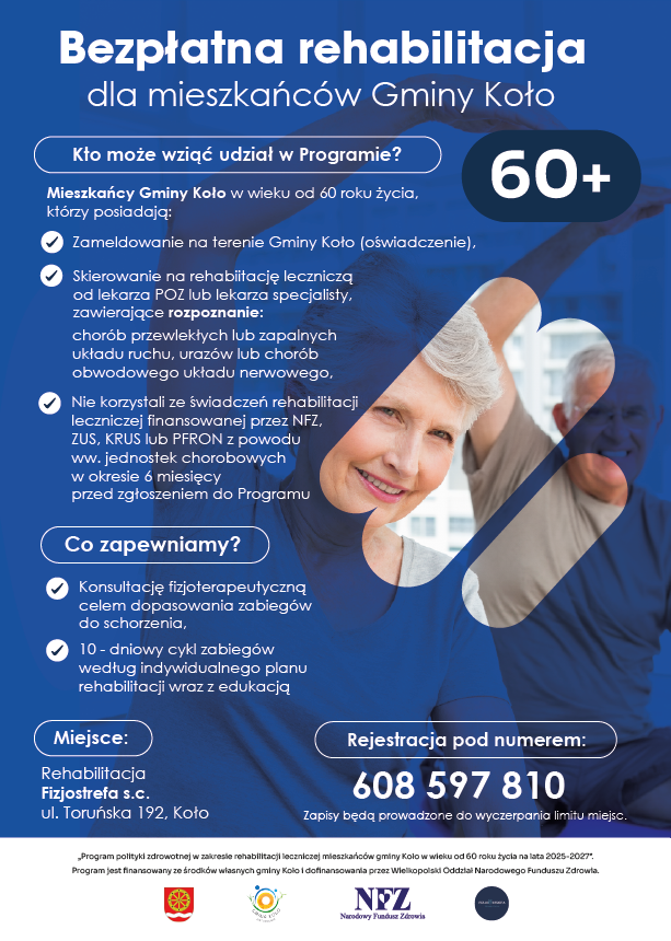 Ruszyły nabory do Projektu Rehabilitacyjnego w Kole dla mieszkańców gminy Koło. Zapraszamy