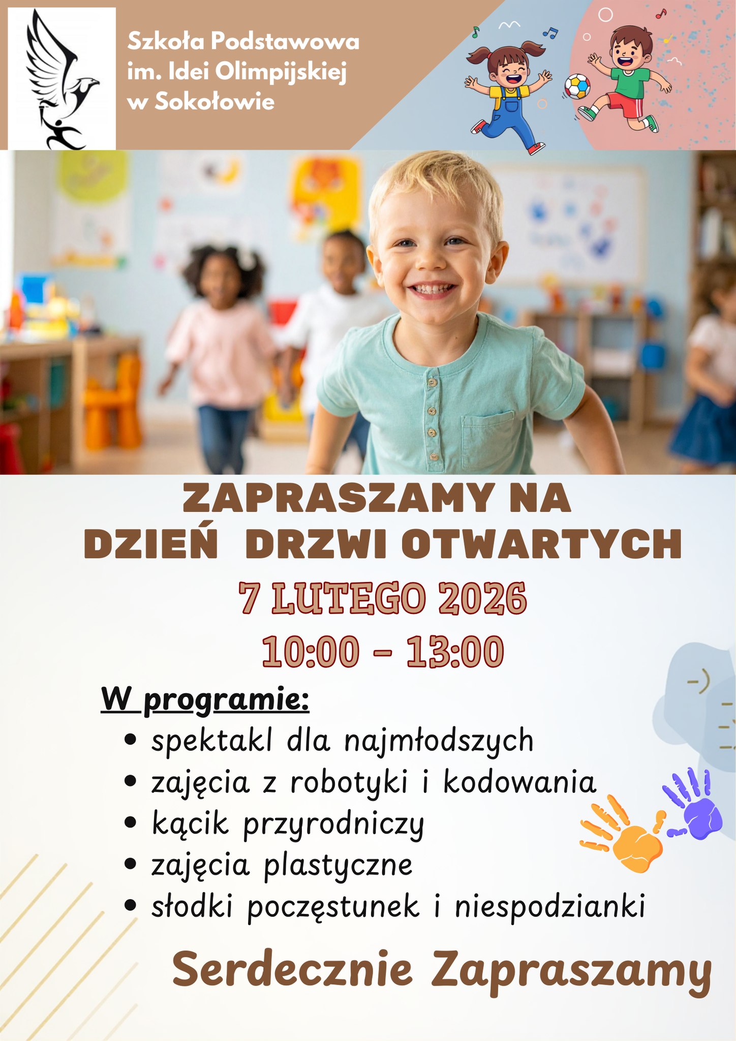2 lutego, 2026 GMINA KOŁO Szkoła Podstawowa im. Idei Olimpijskiej w Sokołowie – Drzwi otwieramy i gorąco zapraszamy! – Udostępnij: