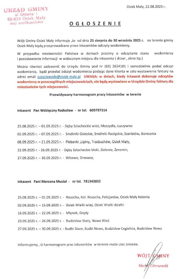 WIADOMOŚCI - GMINA OSIEK MAŁY