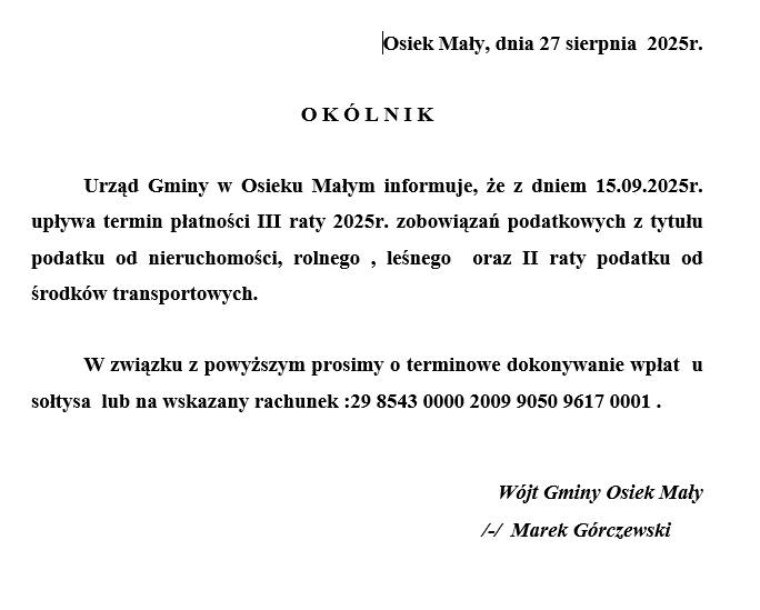 WIADOMOŚCI - GMINA OSIEK MAŁY