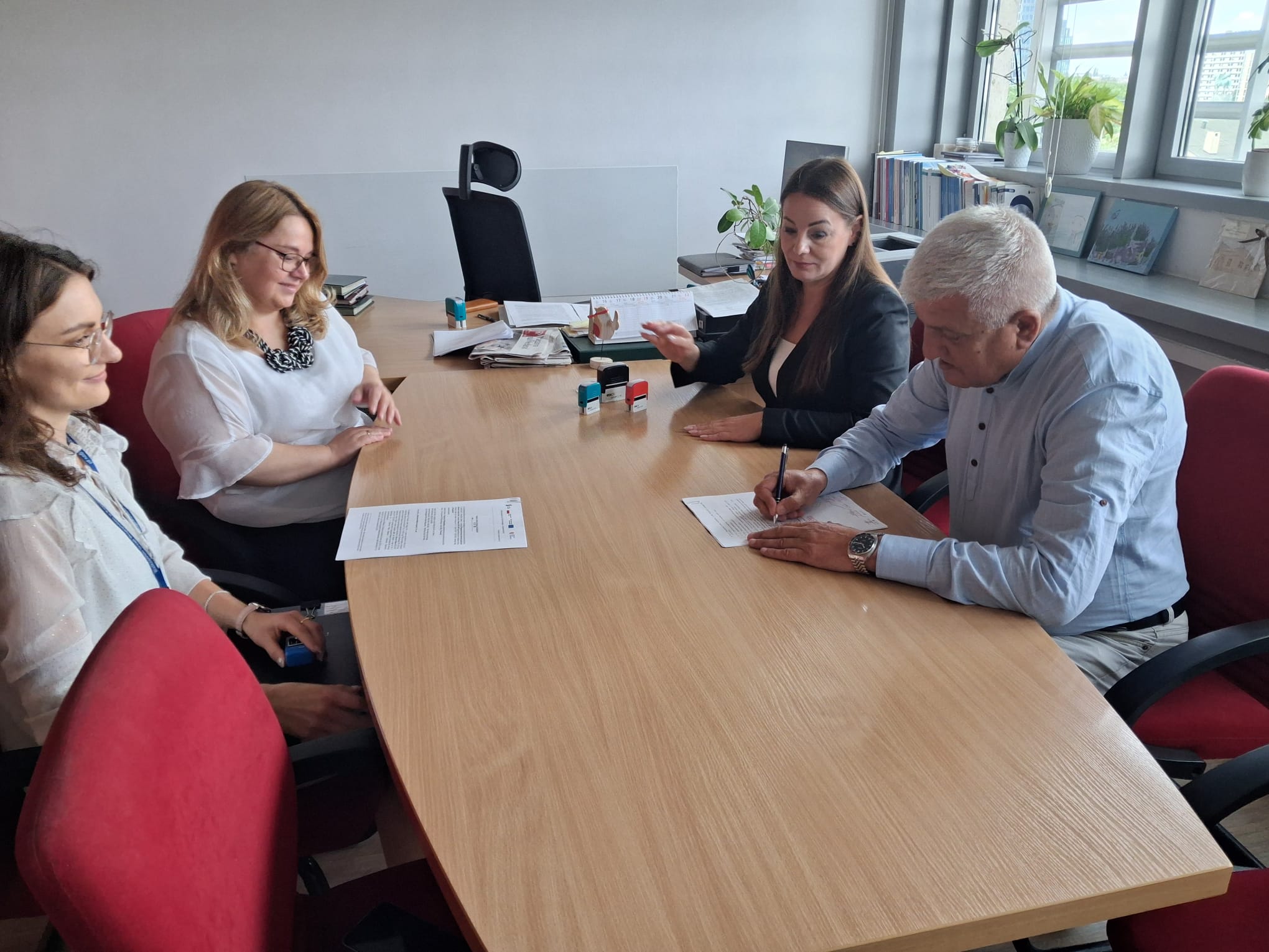 Wójt Gminy Marek Górczewski wraz ze Skarbnikiem Jolantą Rogowską podpisali w Poznaniu umowę na realizację zadania pn. „Zmiana sposobu użytkowania części budynku Szkoły Podstawowej w Osieku Wielkim na pomieszczenia związane klubem dziecięcym w ramach projektu Aktywny Maluch 2022-2029” z funduszy Krajowego Planu Odbudowy.